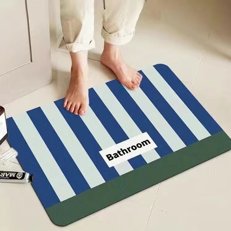 간단한 줄무늬 이층 진흙 흡수성 미끄럼 방지 욕실 바닥 매트 욕실 입구 주방 화장실 입구 문 매트스토어 가기