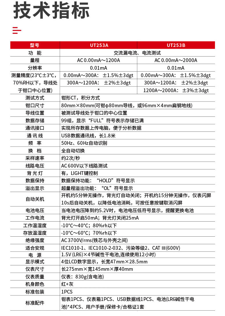 UNI-T Unilide 산업 제품 Unilide UT253A/UT253B 대형 직경 클램프 온 누출 전류 미터 클램프스토어 가기