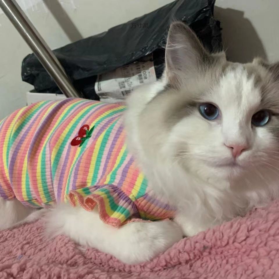 무지개 여름 애완 동물 개 고양이 옷 여름 얇은 안티 헤어 버블 소매 다시 심장 소스 공장 도매
