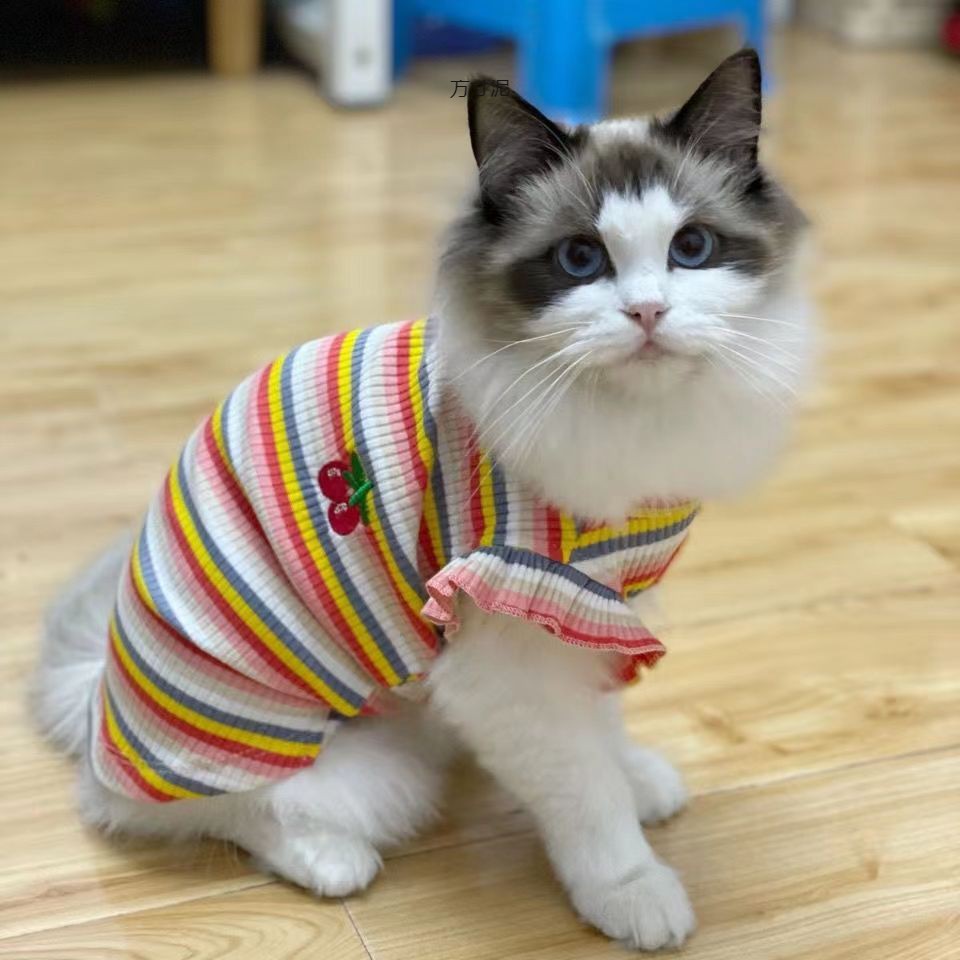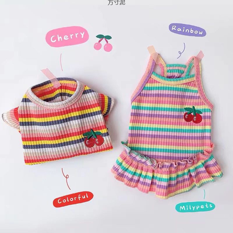 무지개 여름 애완 동물 개 고양이 옷 여름 얇은 안티 헤어 버블 소매 다시 심장 소스 공장 도매스토어 가기