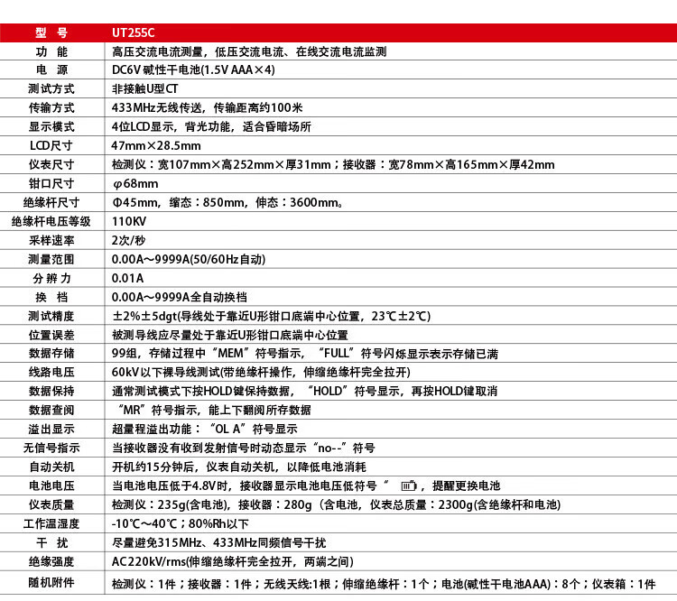 UNI-T Uleed UT255C 무선 높고 낮은 전압 포크 Ammeter 온라인 AC 측정
