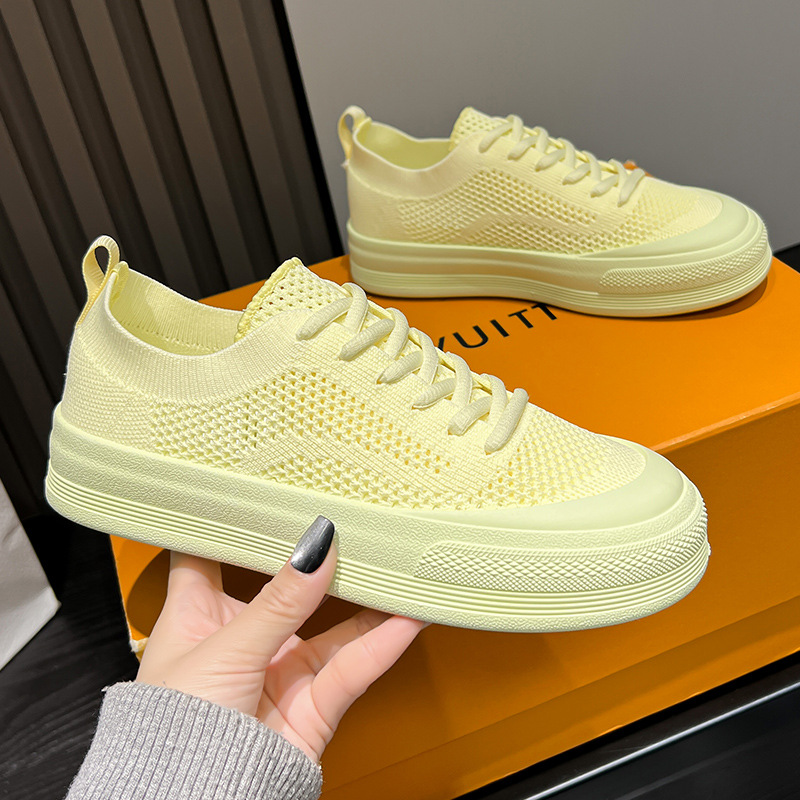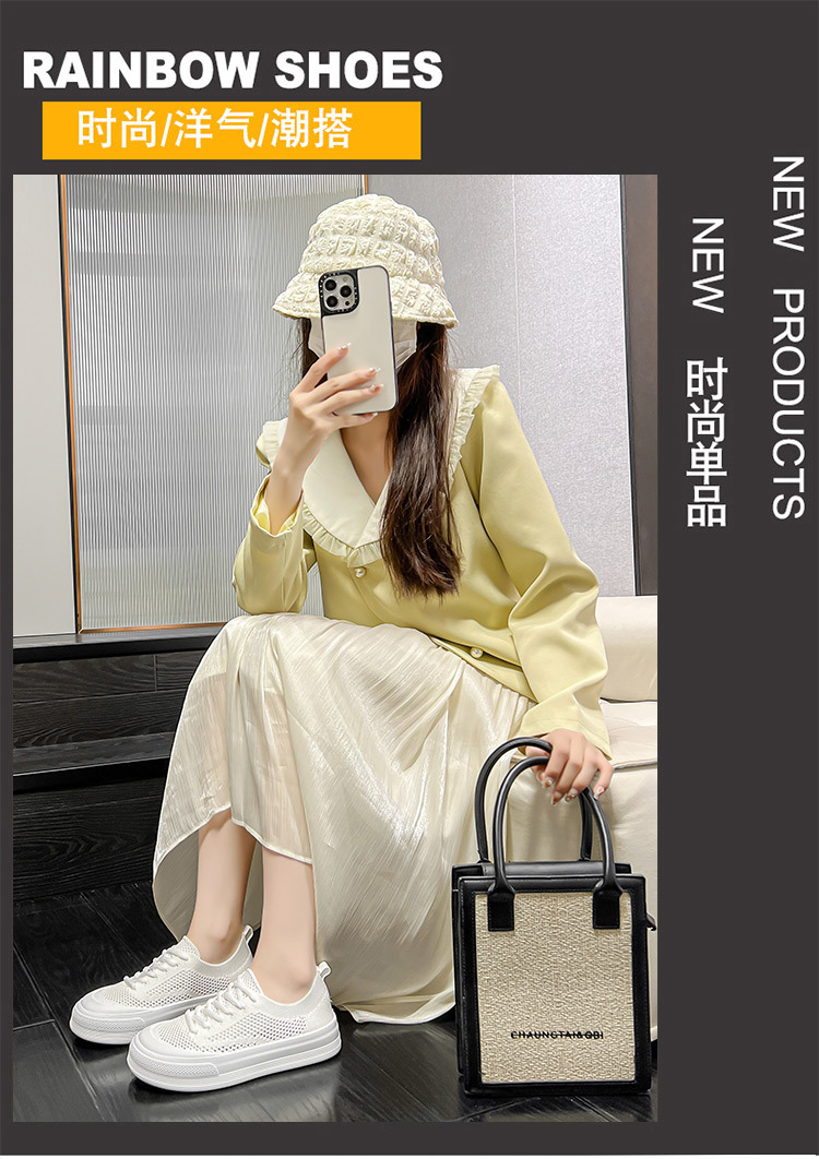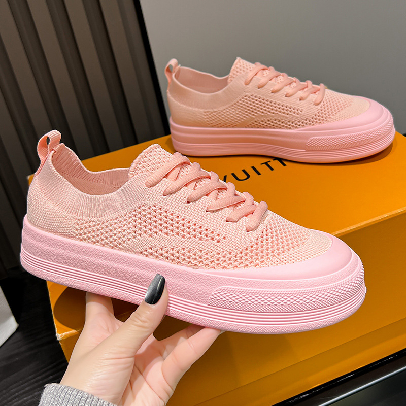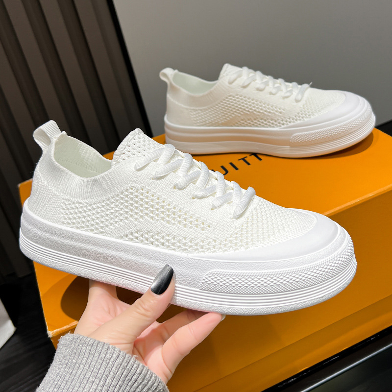 2024 여름 새로운 스포츠 통근 화이트 신발 여성 솔리드 컬러 통기성 메쉬 캐주얼 올 매치 싱글 레이어 신발 학생 보드 신발스토어 가기
