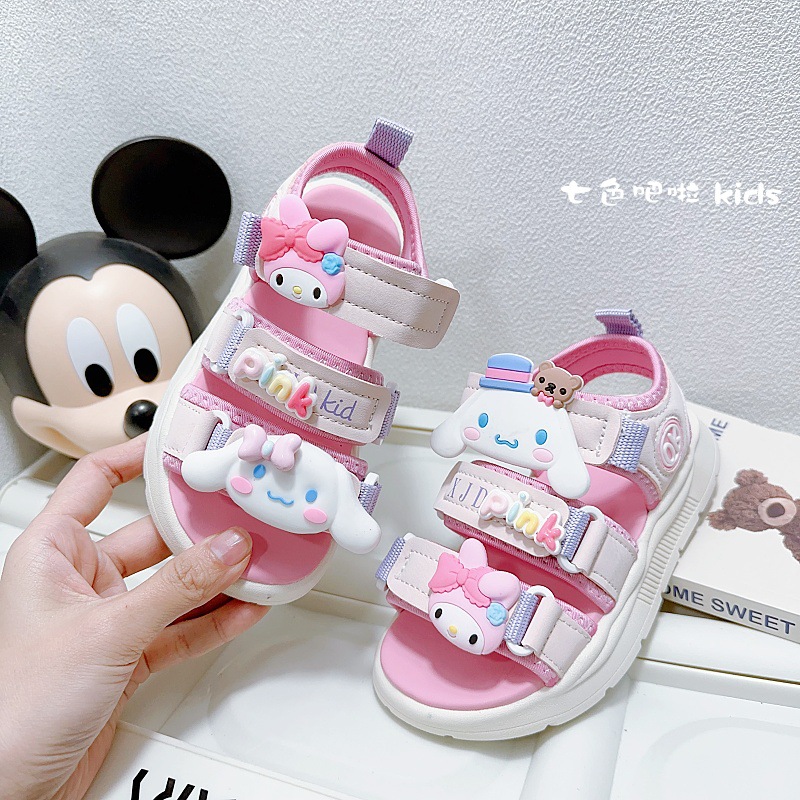 소녀 샌들 2024 학생 아웃 비치 신발 핑크 만화 컬렉션 큰 아이 소녀 공주 패션 샌들스토어 가기