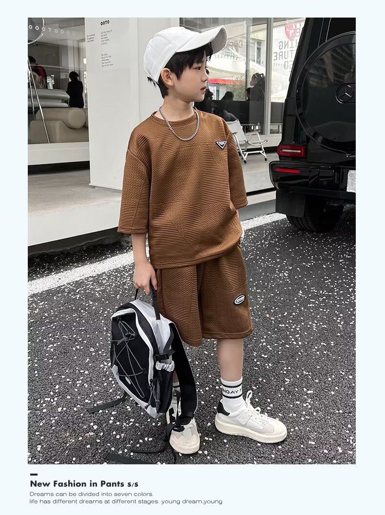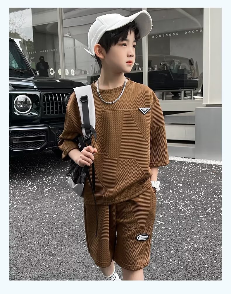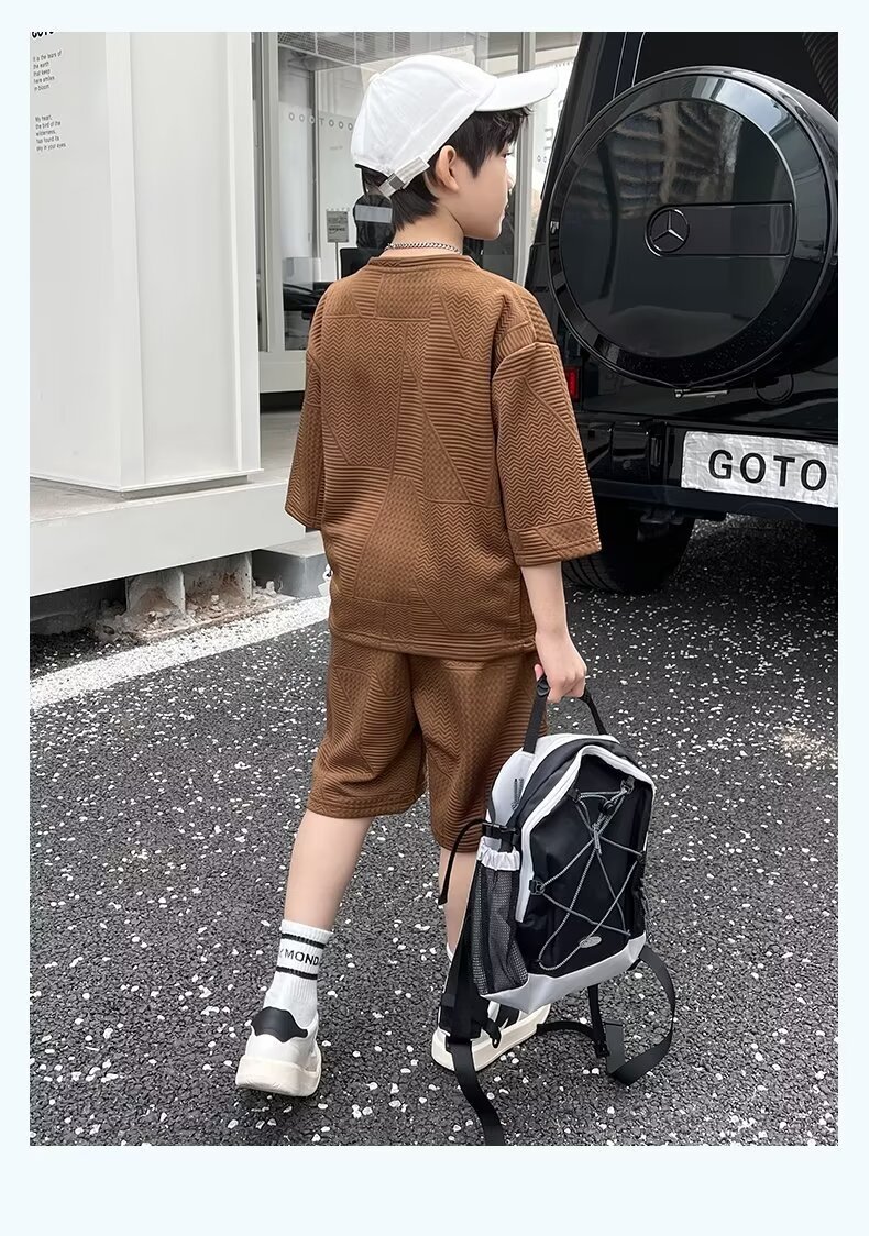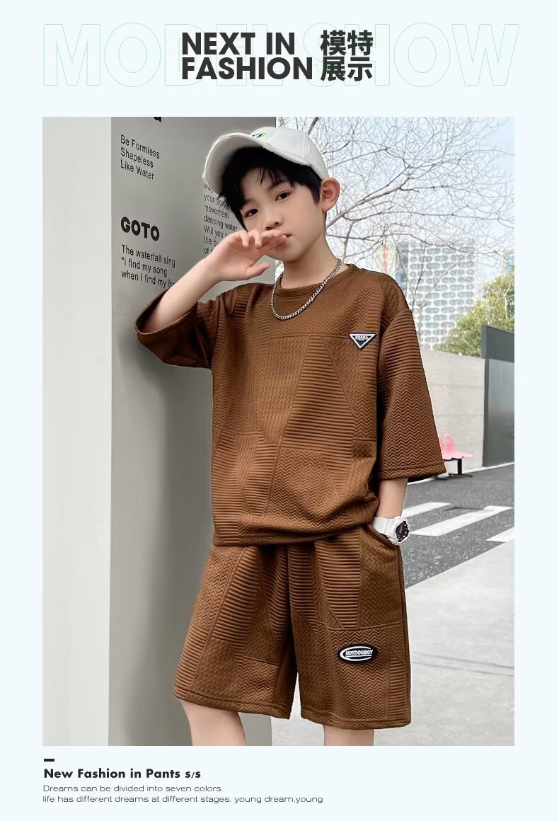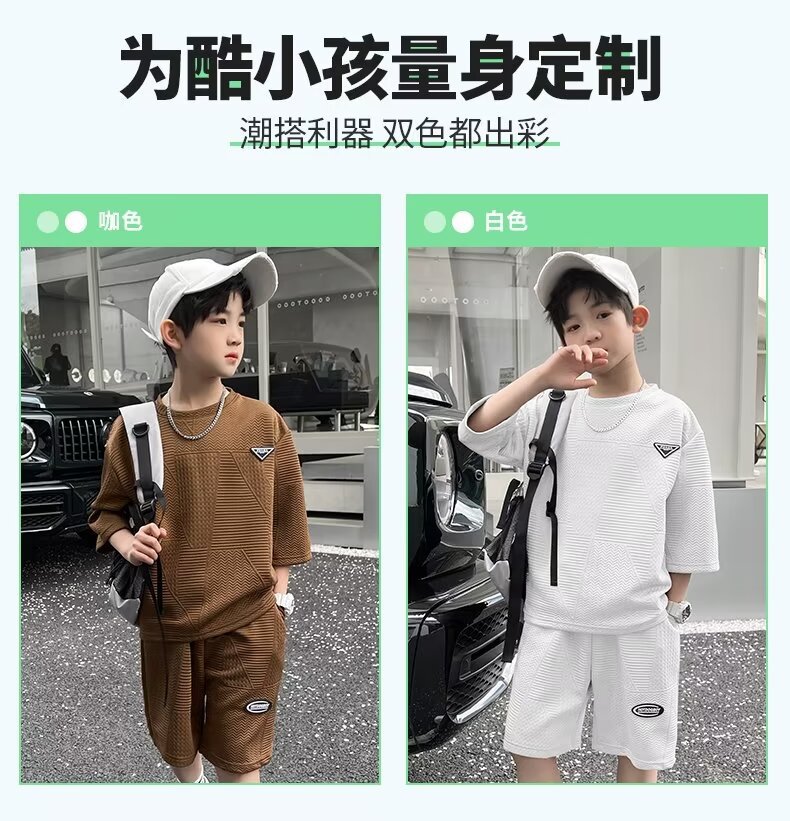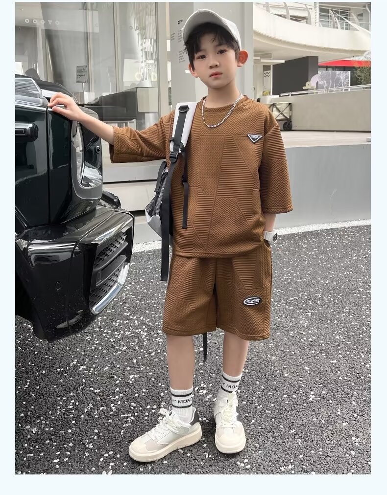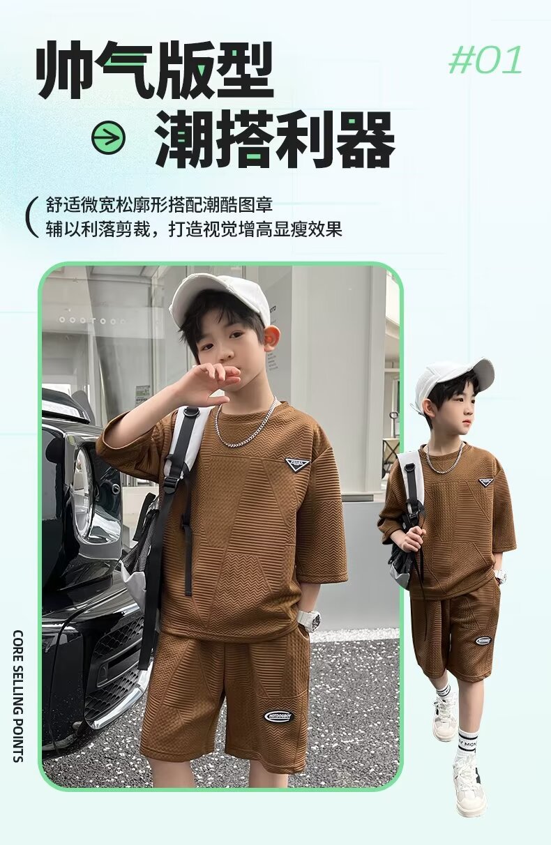 어린이 착용 남학생 여름 착용 세트 2024 새로운 여름 소년 스포츠 얇은 중간 및 대형 어린이 여름 시원하고 세련된