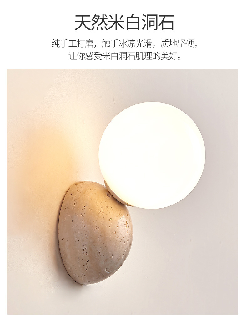 크림 바람 동굴 돌 벽 램프 중세 디자이너 일본 침실 침대 옆 창조적 인 복고풍 거실 TV 배경 벽 램프스토어 가기