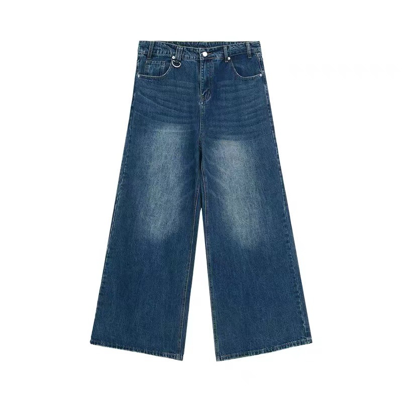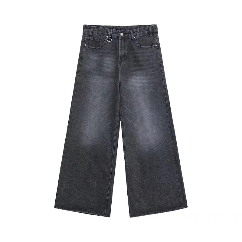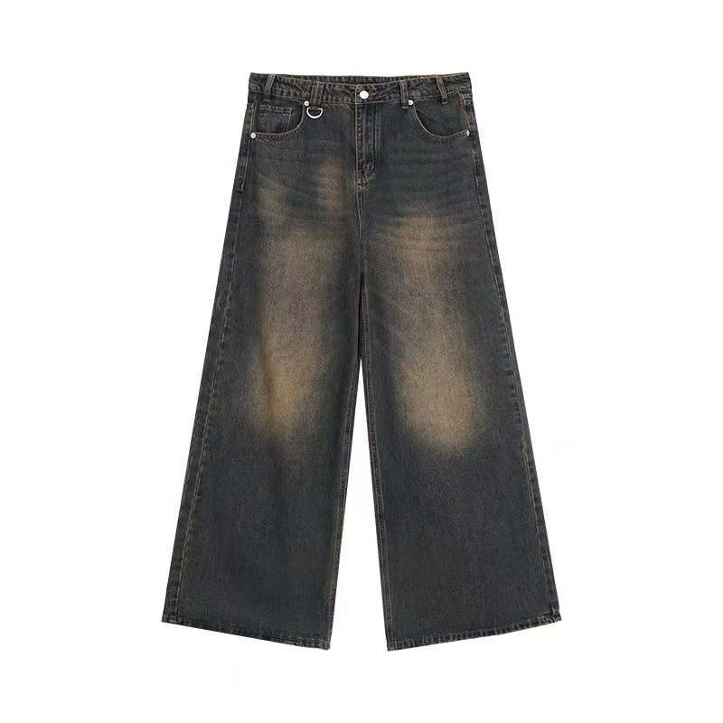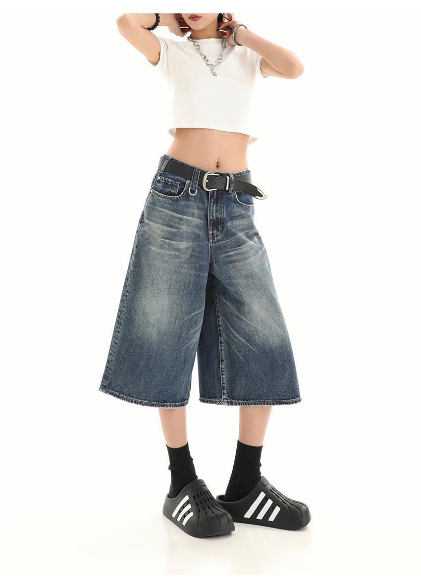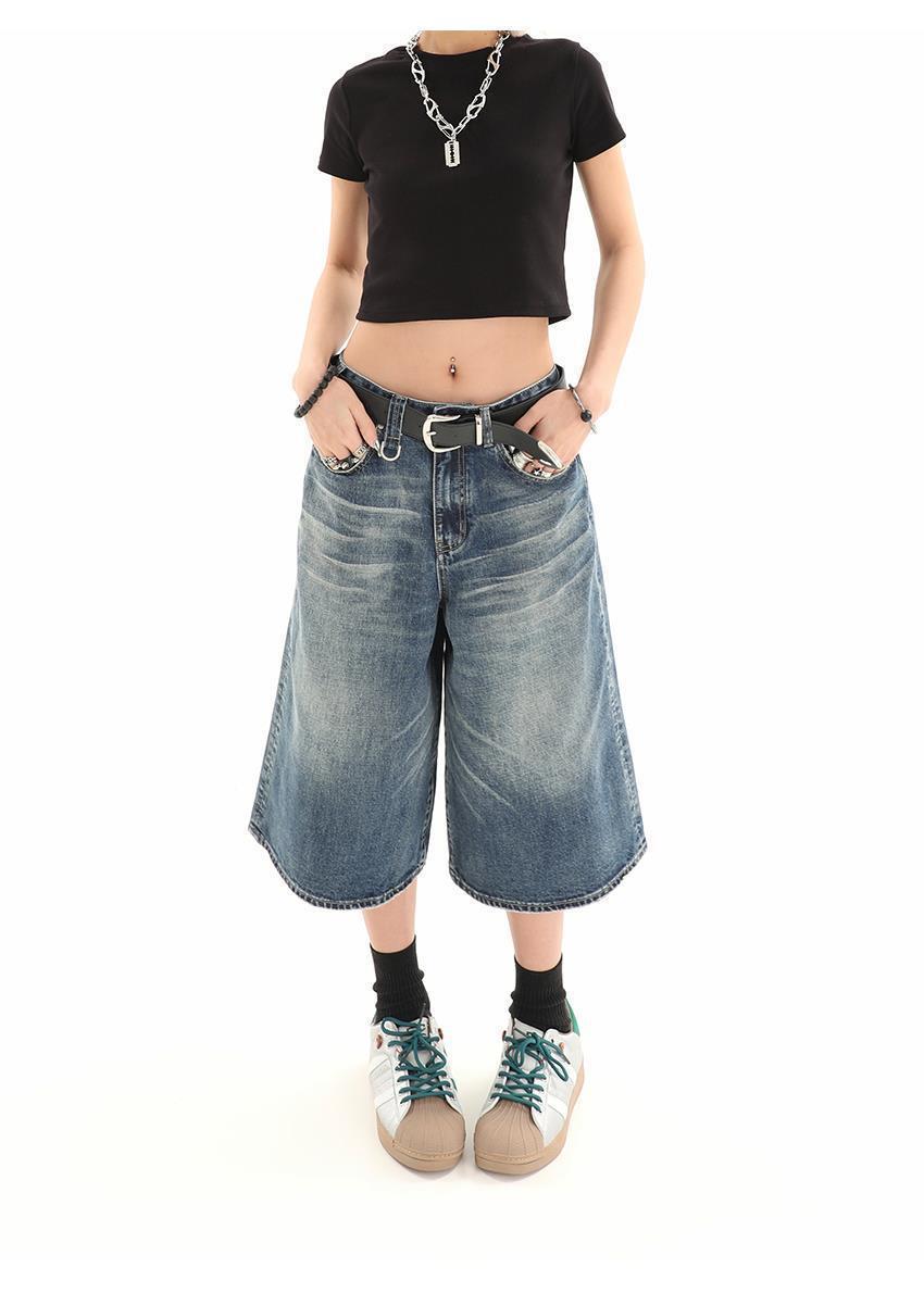 아메리칸 스타일 레트로 느슨한 프로필 씻은 오래된 자른 데님 반바지 남성 여름 하이 스트리트 디자인 와이드 다리 바지스토어 가기