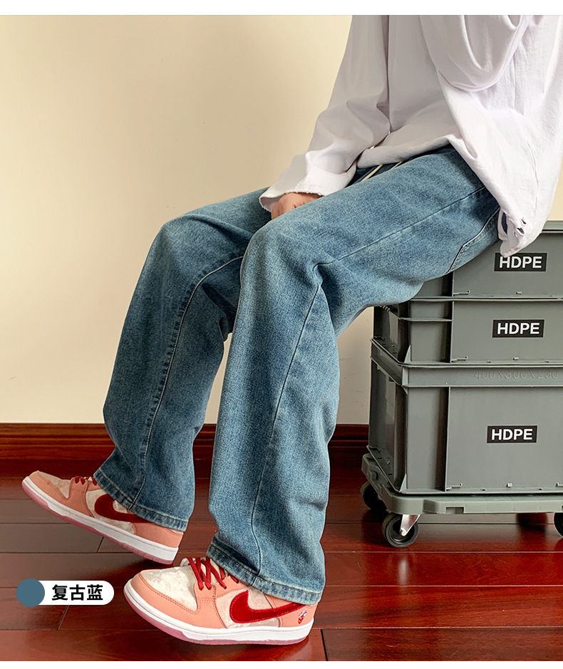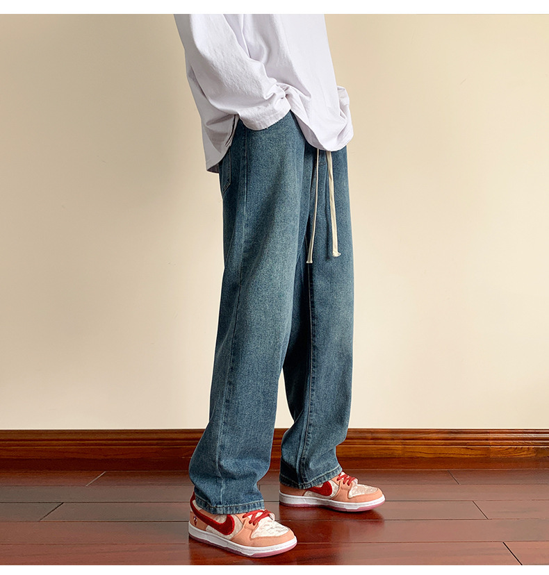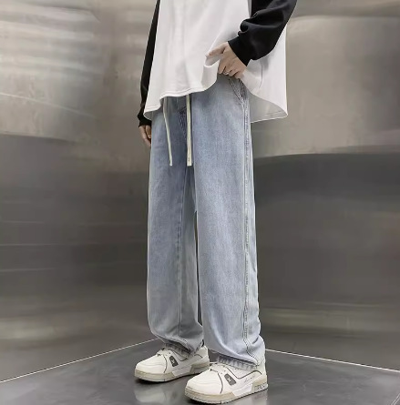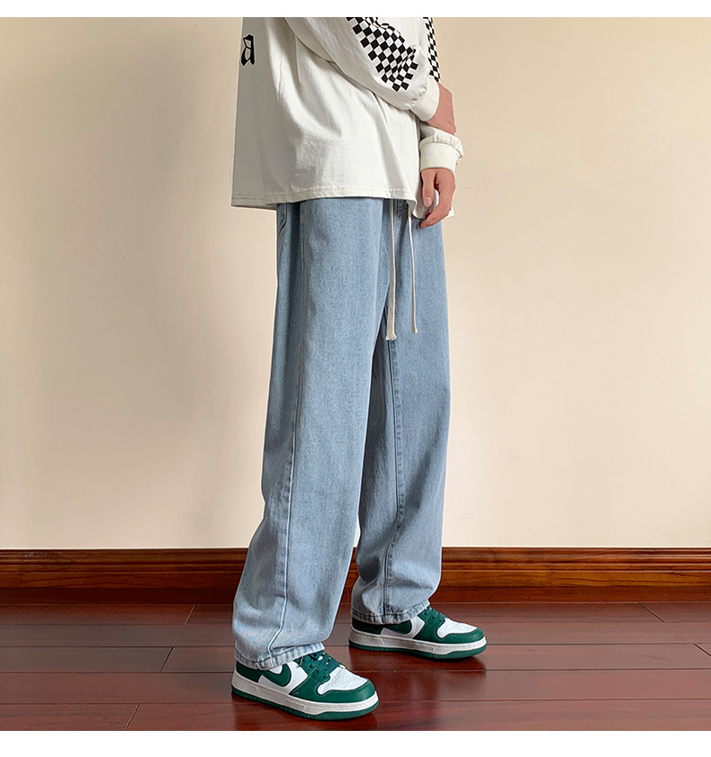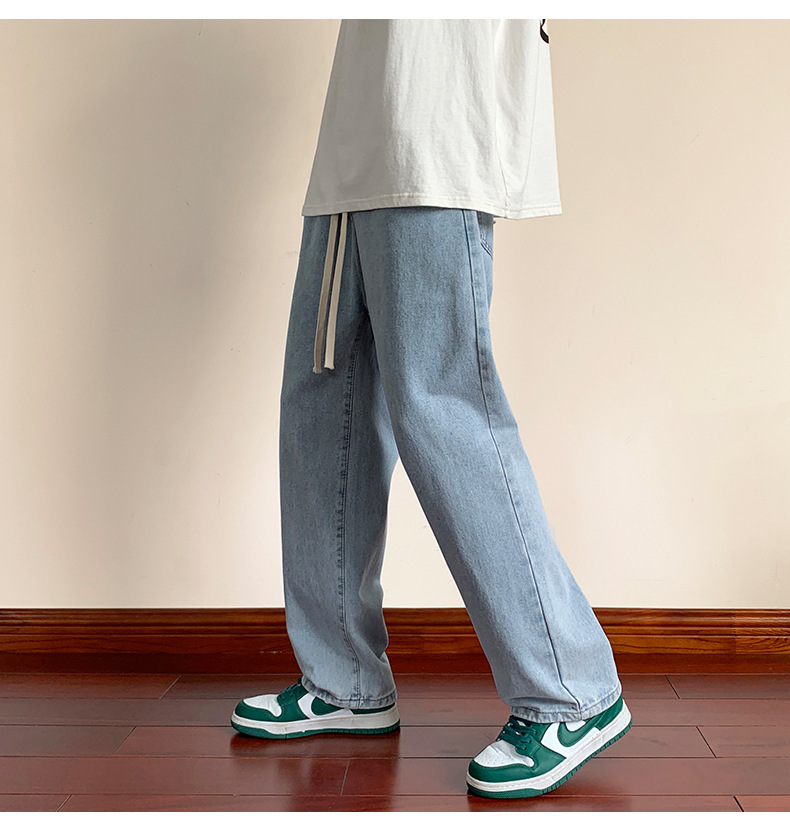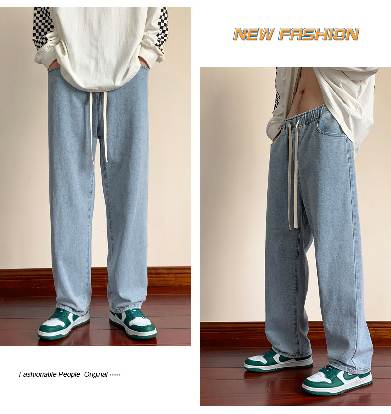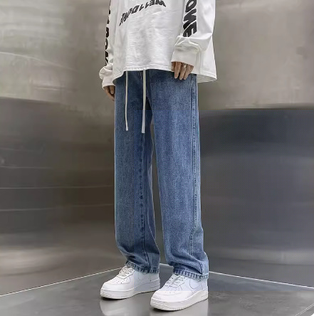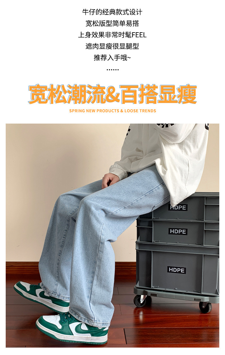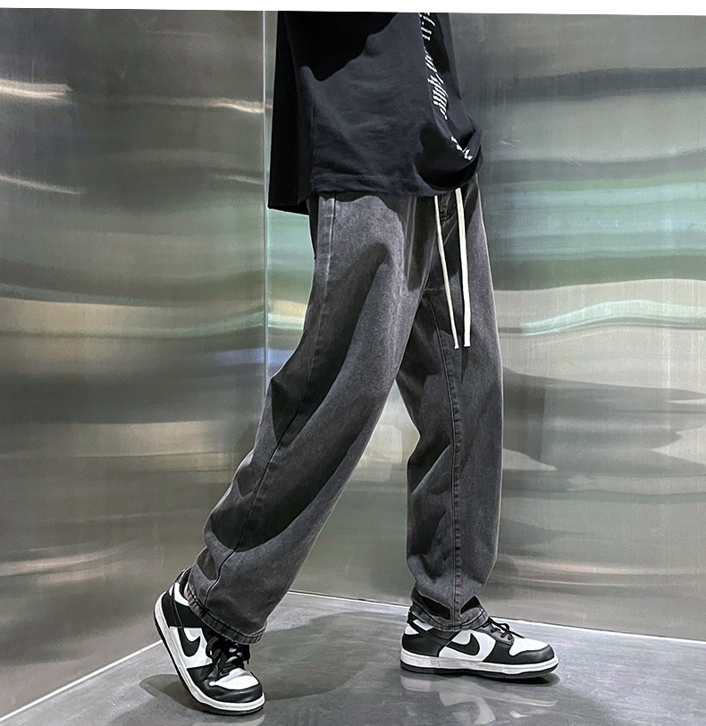 청바지 남자의 봄과 가을 느슨한 넓은 다리 스트레이트 캐주얼 바지 ins2024 새로운 패션 브랜드 긴 바지
