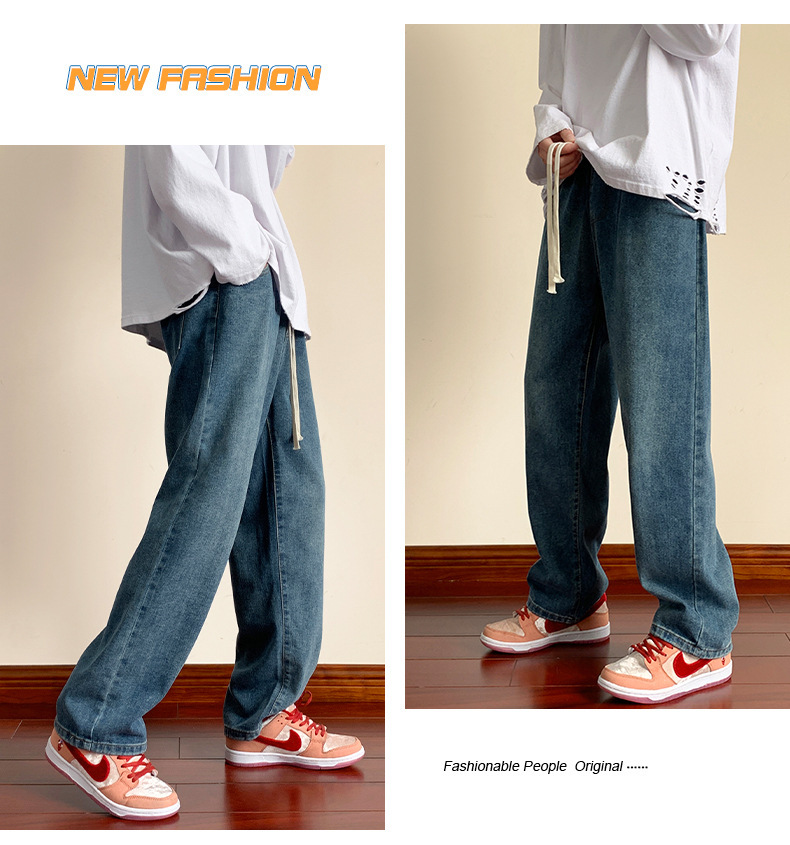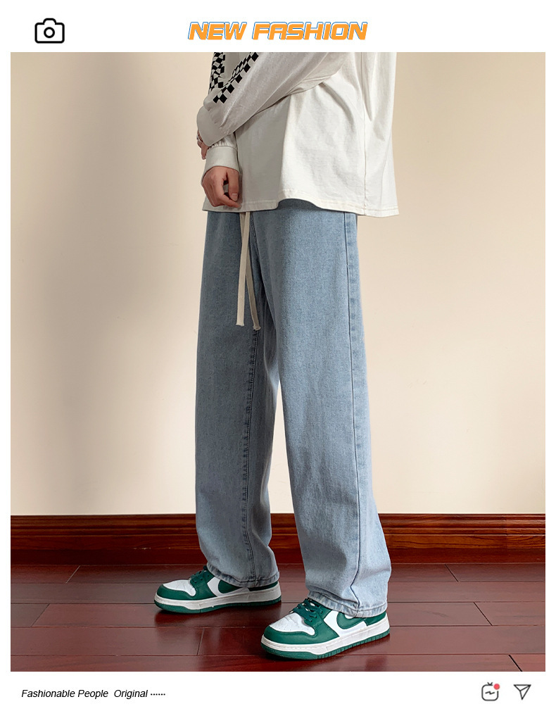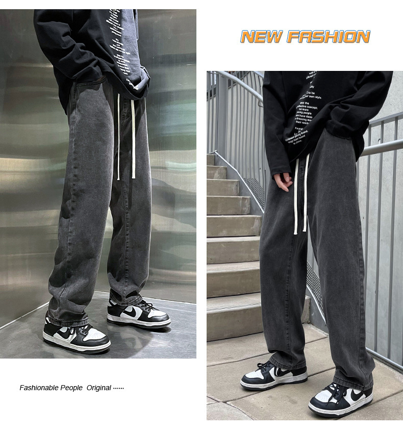 청바지 남자의 봄과 가을 느슨한 넓은 다리 스트레이트 캐주얼 바지 ins2024 새로운 패션 브랜드 긴 바지스토어 가기