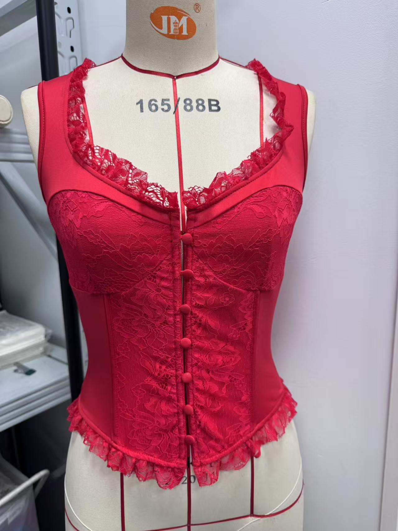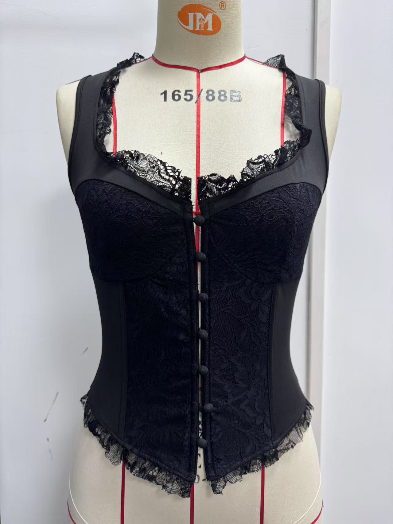 유럽과 미국의 국경 간 대외 무역 스파이스 소녀 레이스 바느질 기질 올매치 슬링 피시 허리 조끼 Z0478스토어 가기
