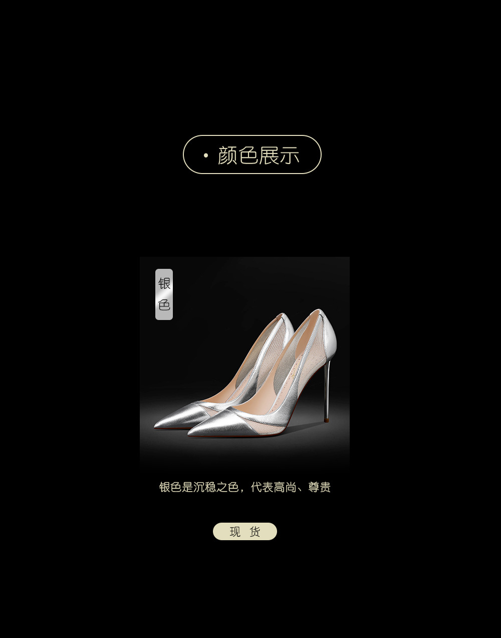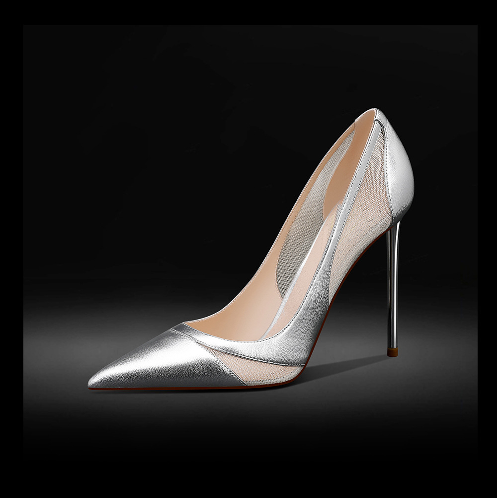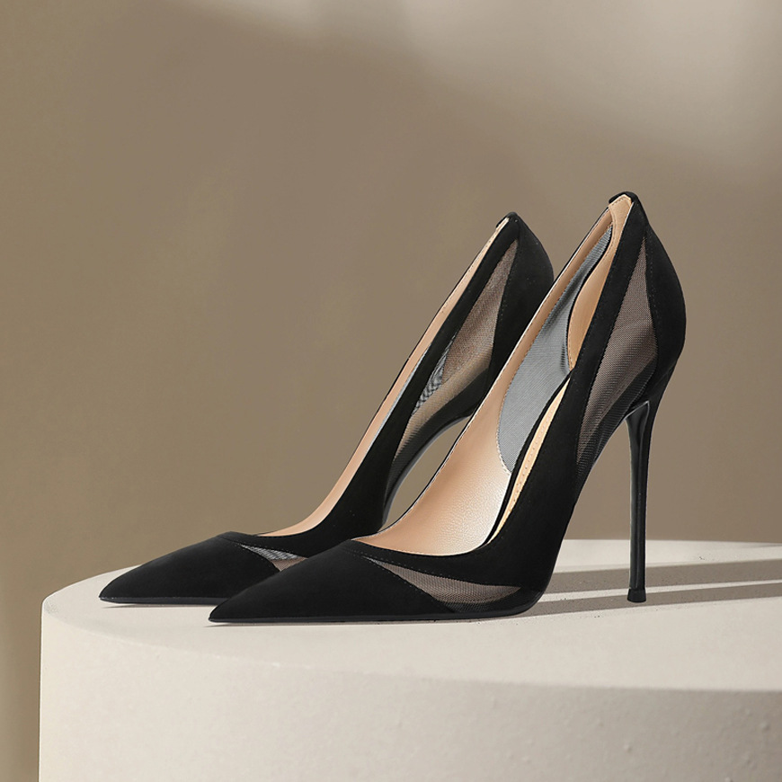 32-45 사이즈 2024 봄 새로운 스티칭 메쉬 실버 하이힐 여성 뾰족한 발가락 낮은 베일 기질 스틸레토 힐 신발스토어 가기
