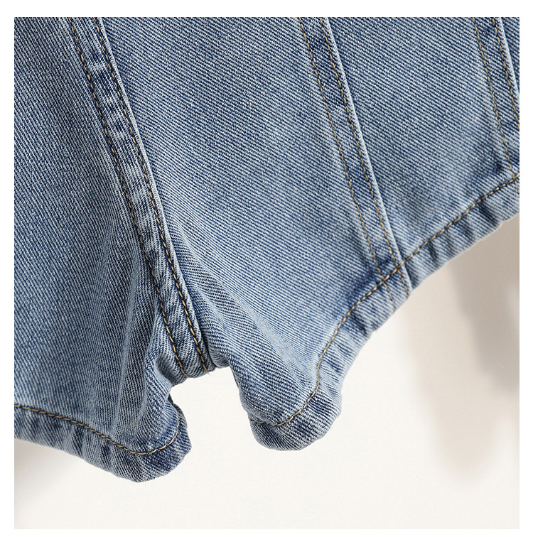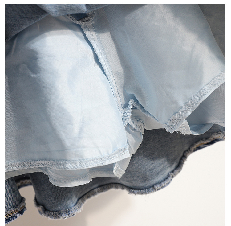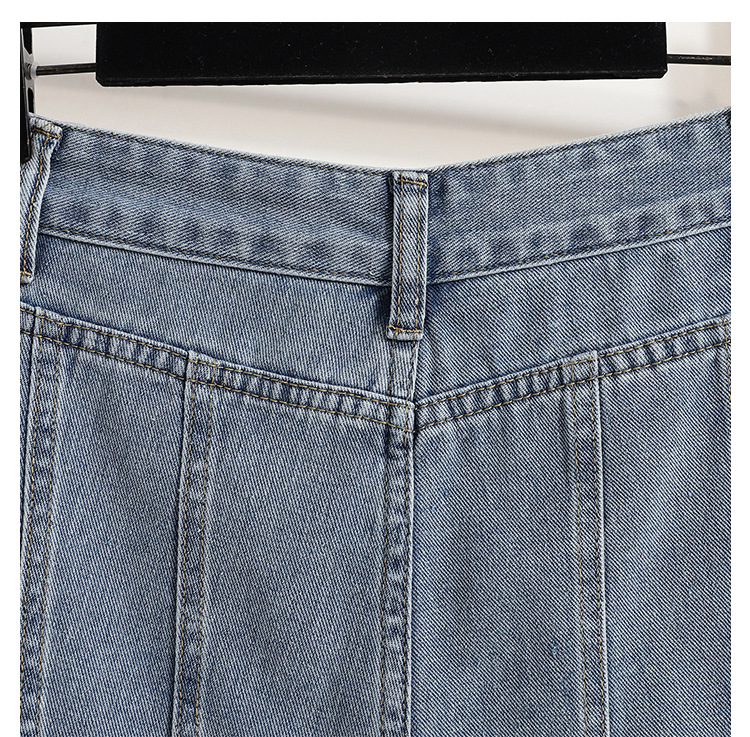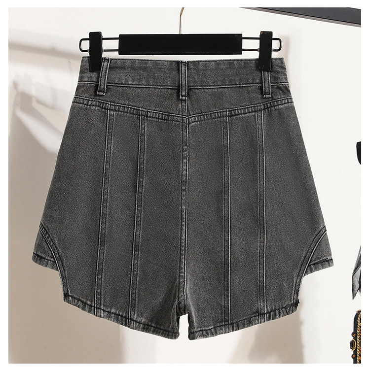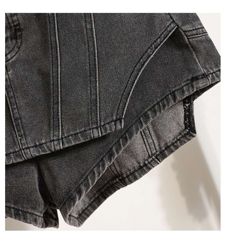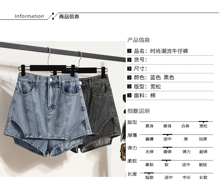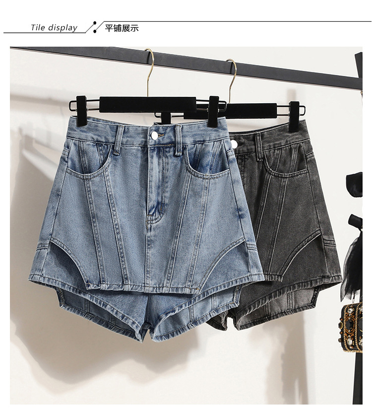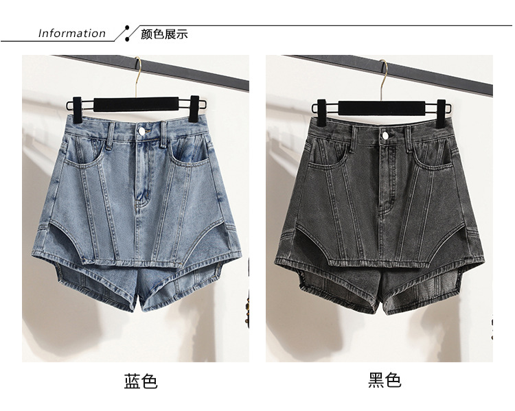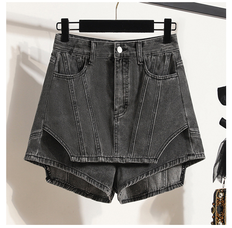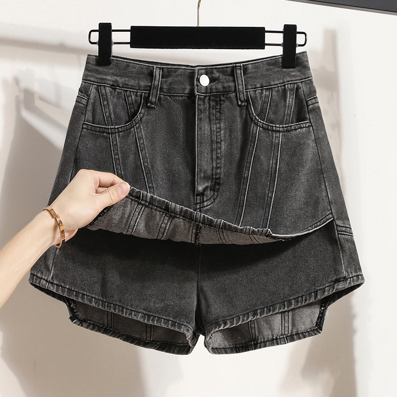 진짜 샷 높은 허리 데님 Culottes 여성의 가을 섹시한 씻어 A-라인 데님 반바지 통통녀 가짜 투피스 플러스 사이즈
