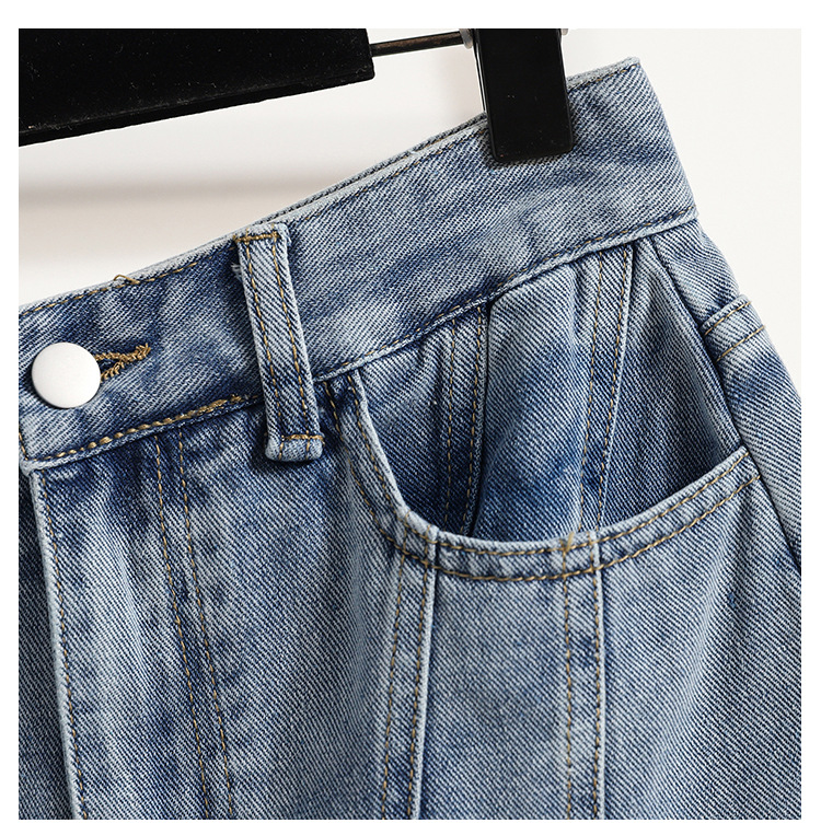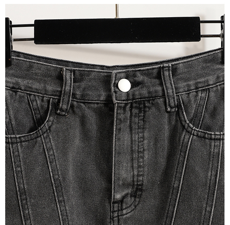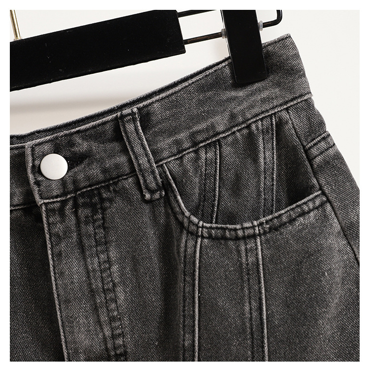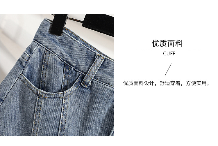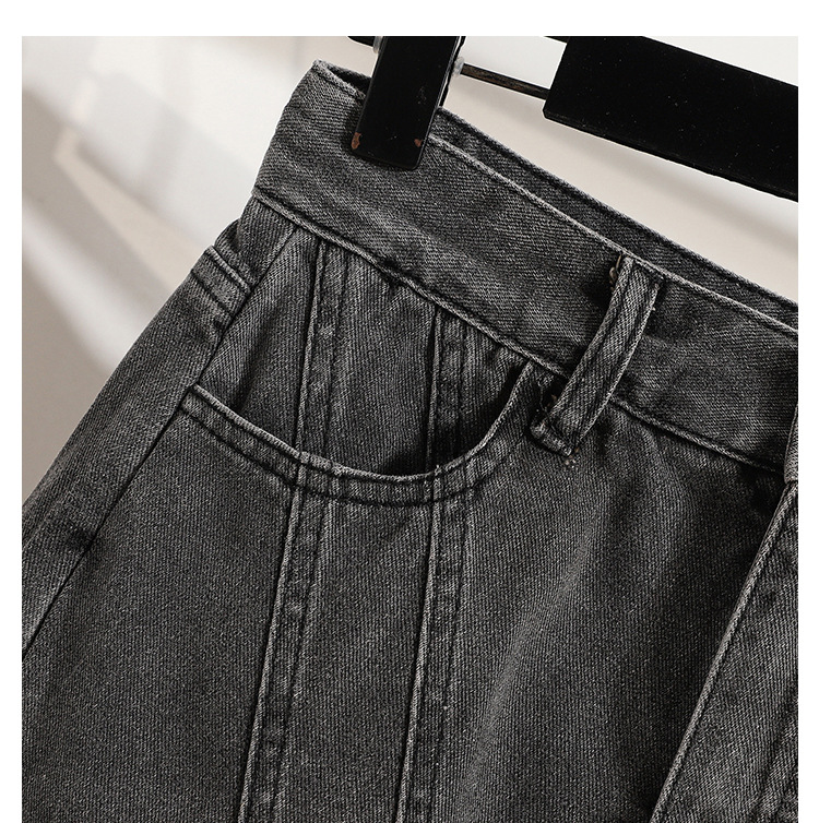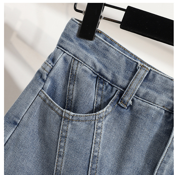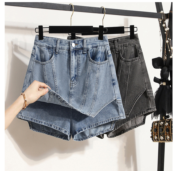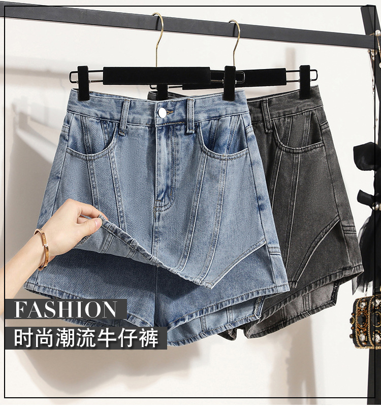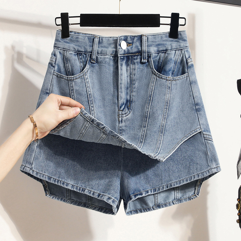 진짜 샷 높은 허리 데님 Culottes 여성의 가을 섹시한 씻어 A-라인 데님 반바지 통통녀 가짜 투피스 플러스 사이즈스토어 가기