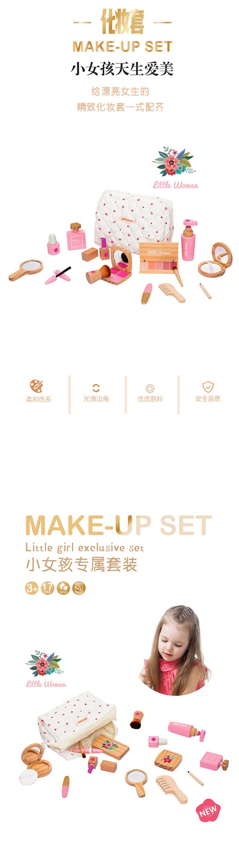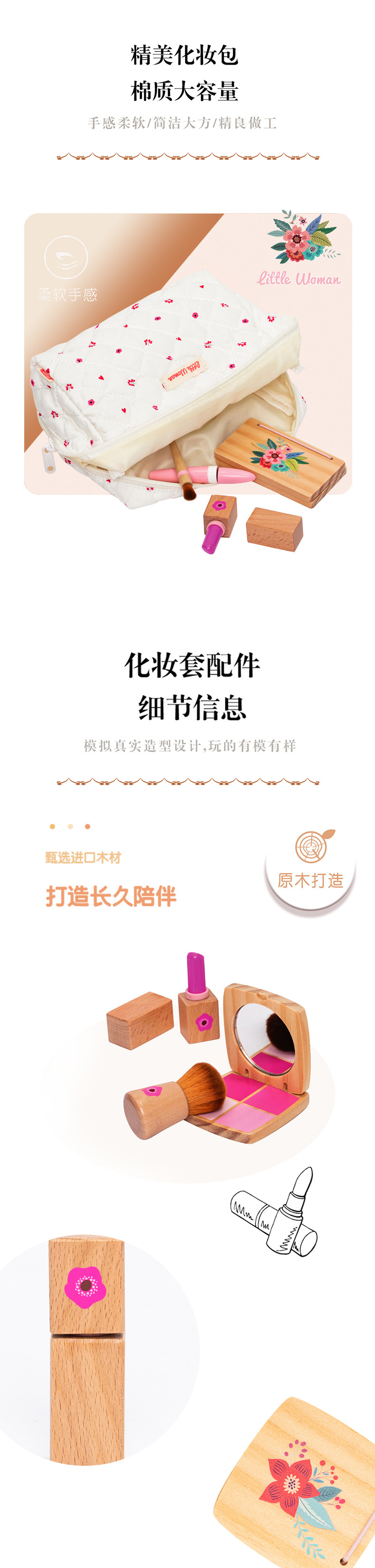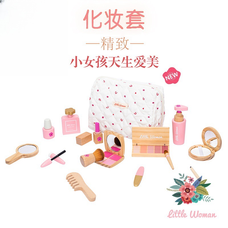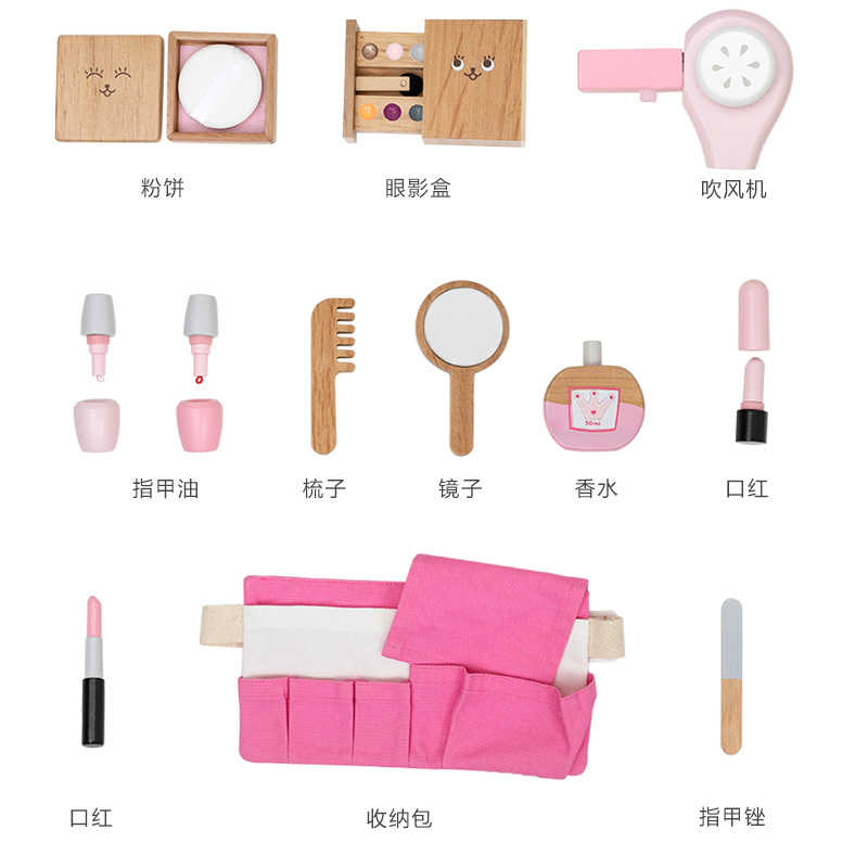 어린이 조기 교육 시뮬레이션 놀이 놀이 가방 여성 화장품 세트 교육 작은 역할 나무 장난감 재생