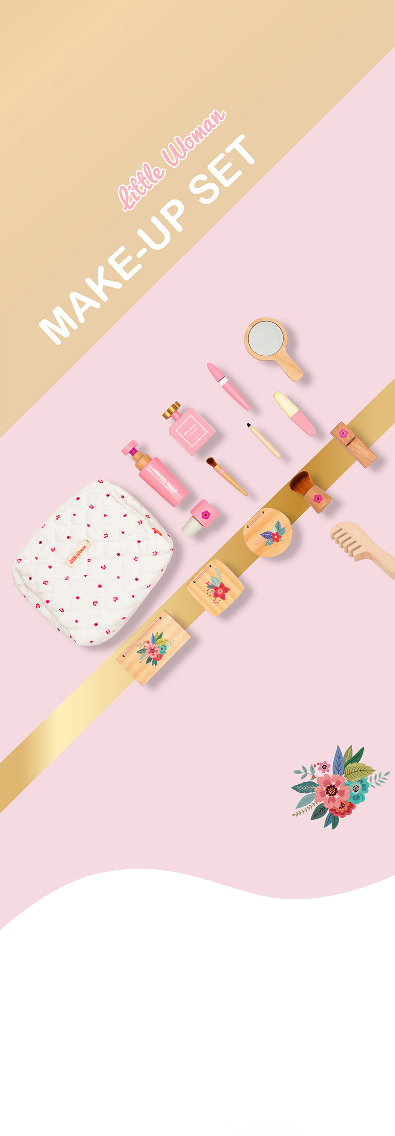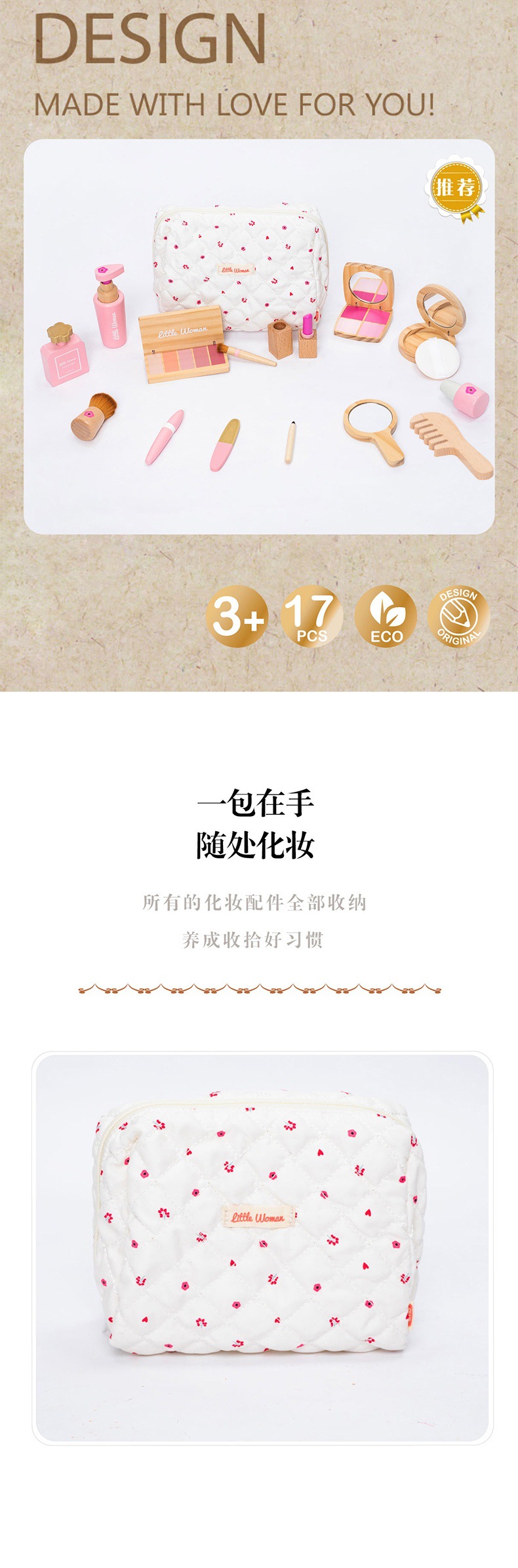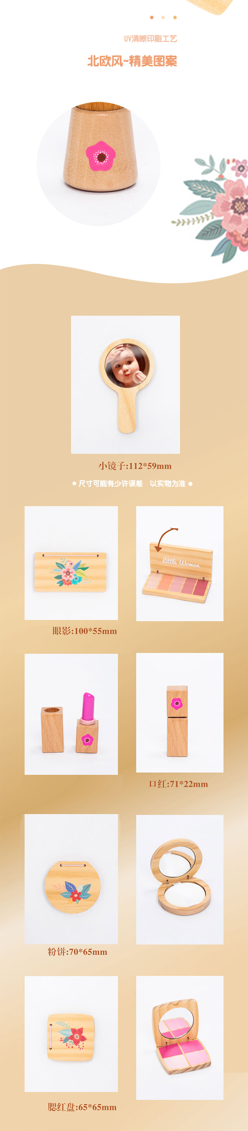 어린이 조기 교육 시뮬레이션 놀이 놀이 가방 여성 화장품 세트 교육 작은 역할 나무 장난감 재생