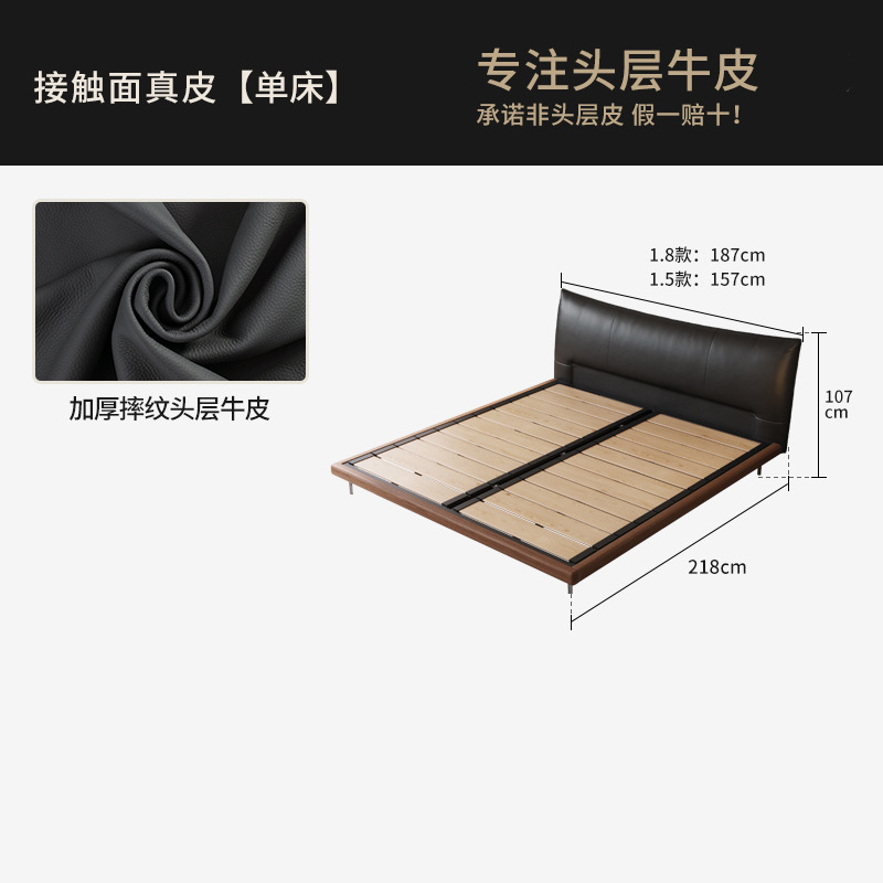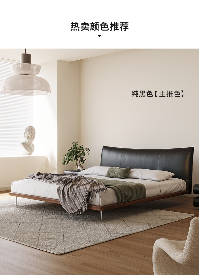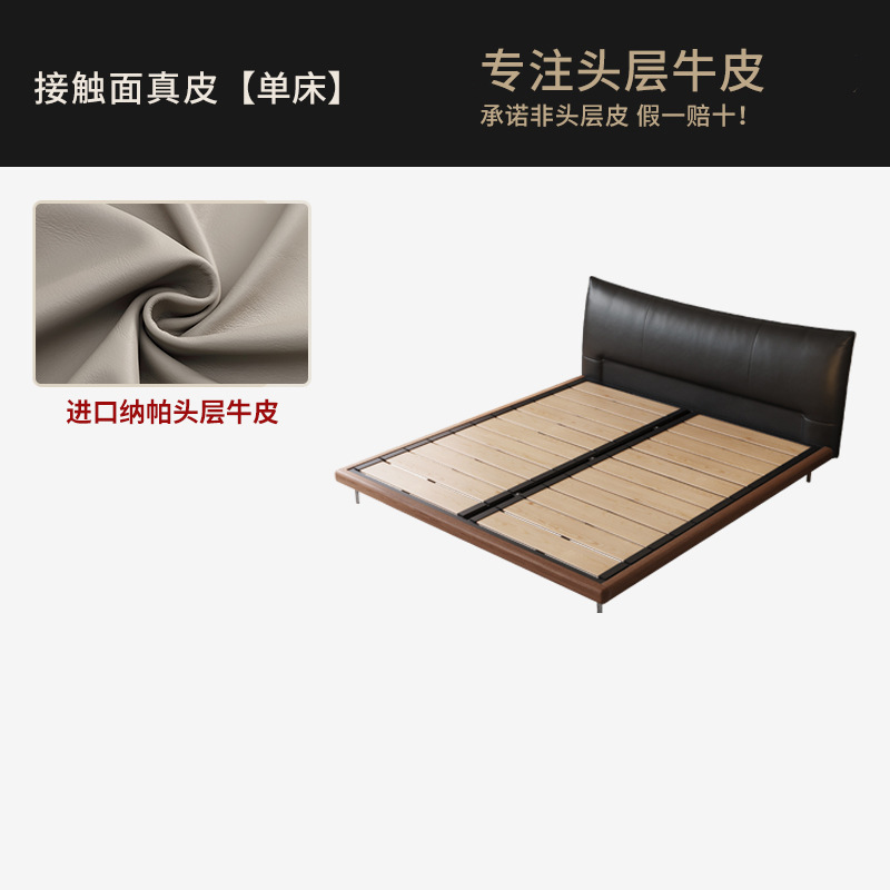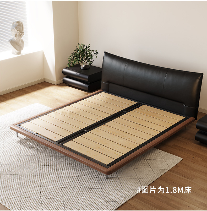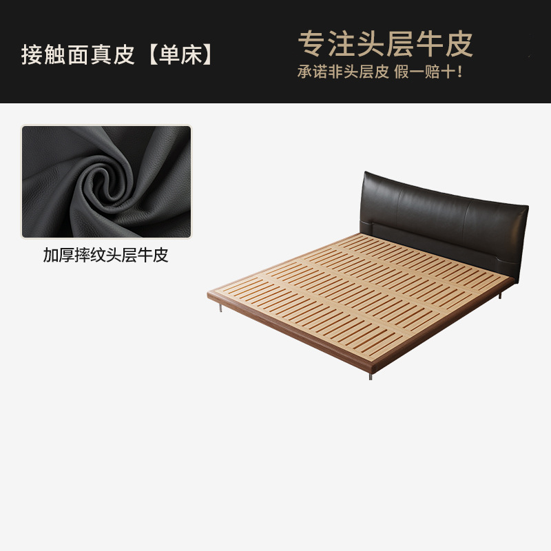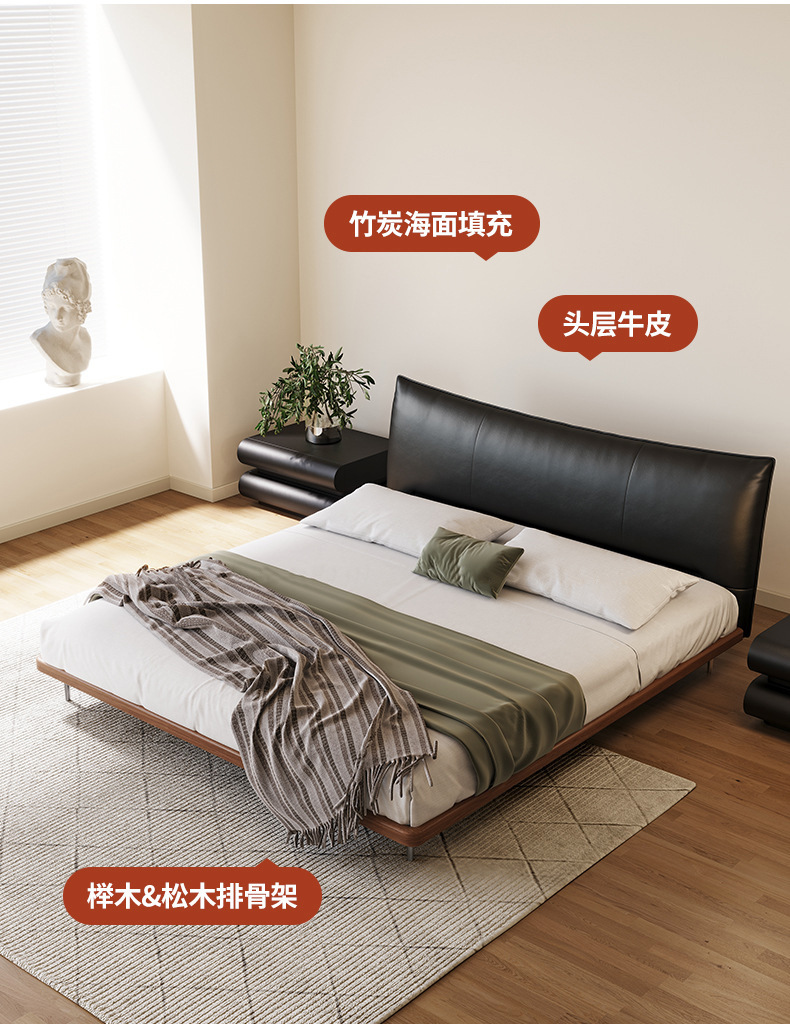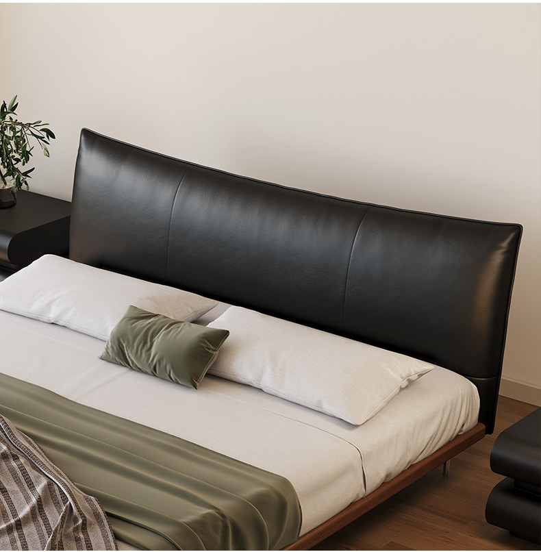 이탈리아 미니멀리스트 가죽 침대 현대 미니멀리스트 마스터 침실 블랙 빈티지 너도밤 나무 침대 골동품 더블 침대