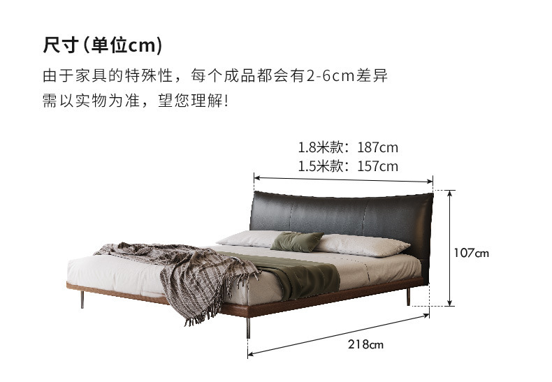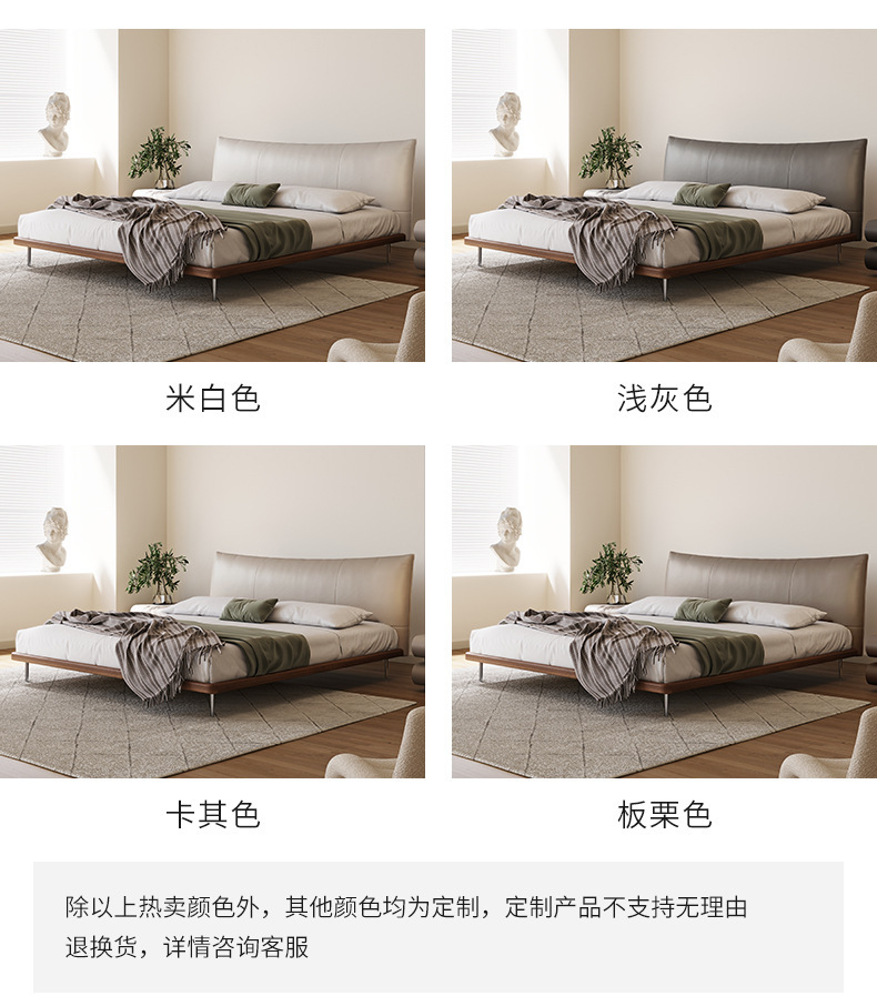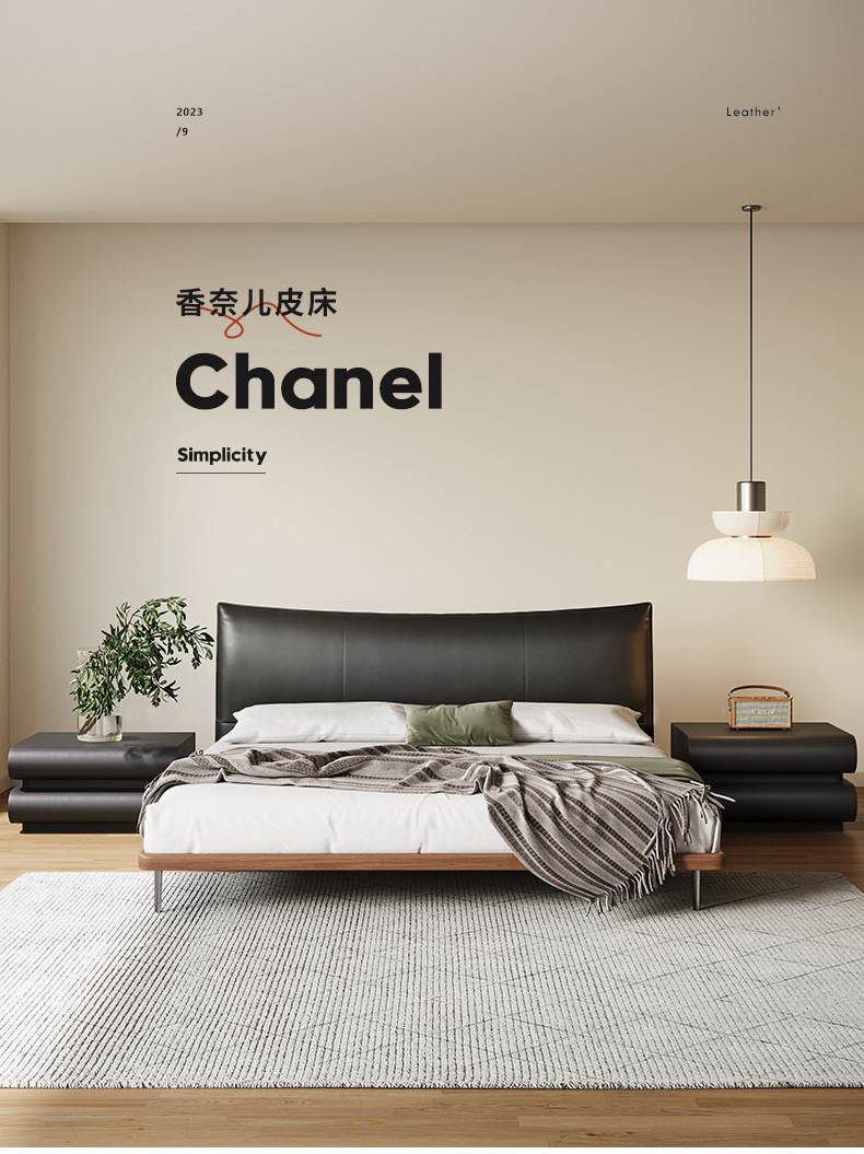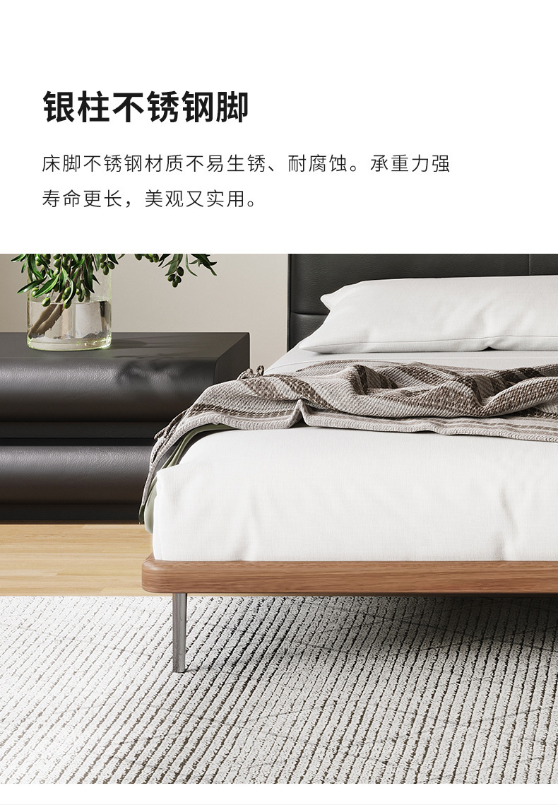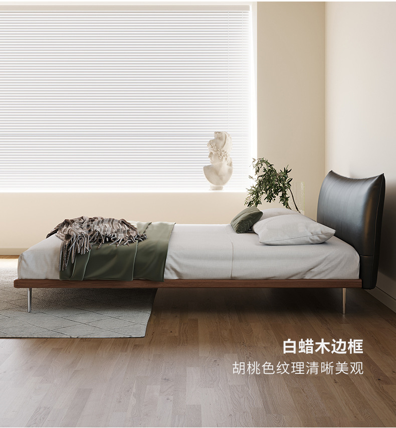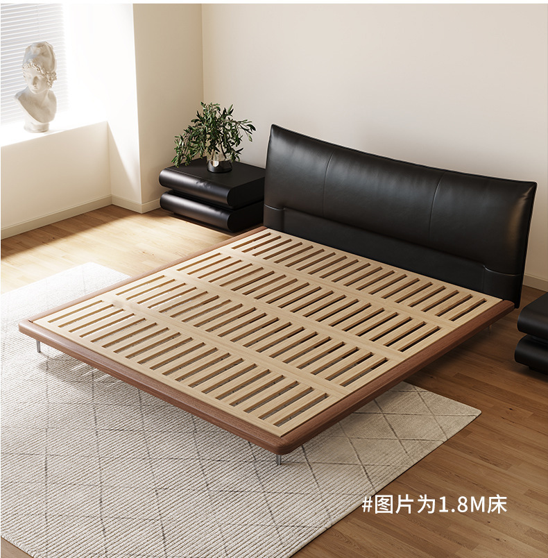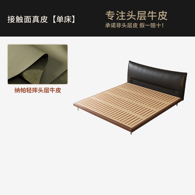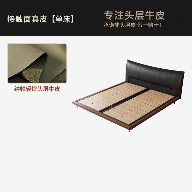 이탈리아 미니멀리스트 가죽 침대 현대 미니멀리스트 마스터 침실 블랙 빈티지 너도밤 나무 침대 골동품 더블 침대