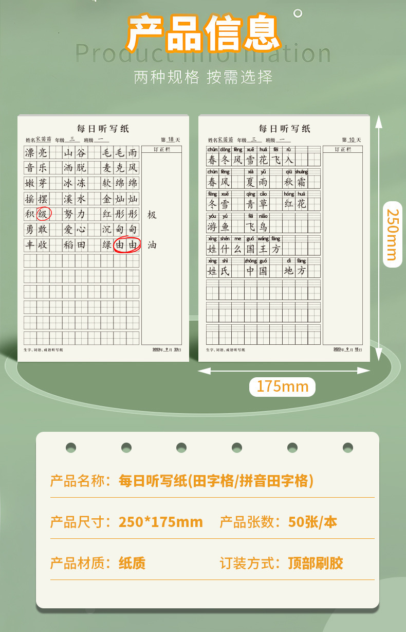 • 단색 매일 받아쓰기 종이/Tian Zi