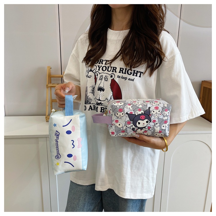 만화 귀여운 메이크업 토트 백 학생 클래스 연필 가방 소녀 Kulomi 일본식 저장 대용량 핸드 백스토어 가기