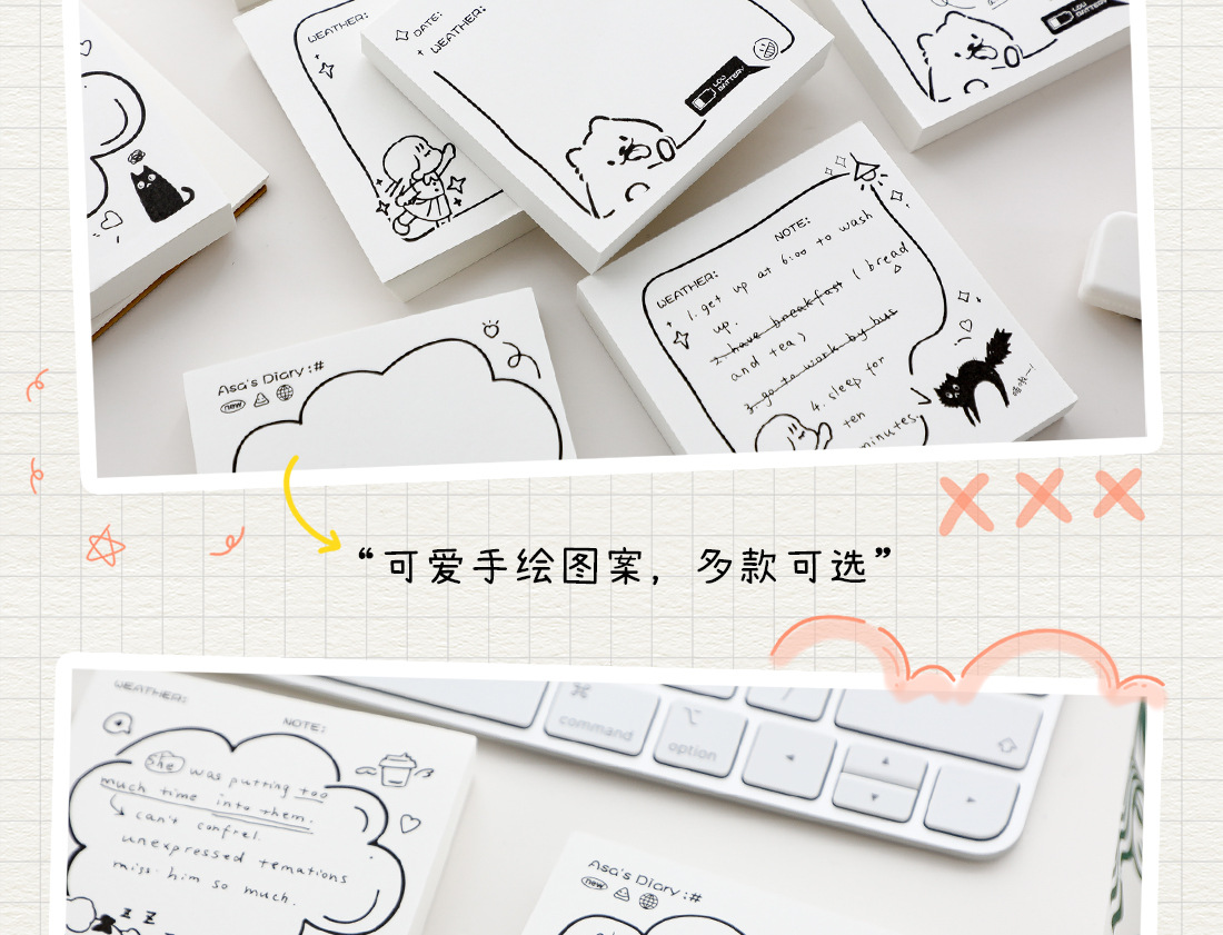Amei 일기 귀여운 노트 종이 비 끈적 끈적한 노트 북 diy 노트 메시지 작은 사각형 벽돌 노트 종이 400