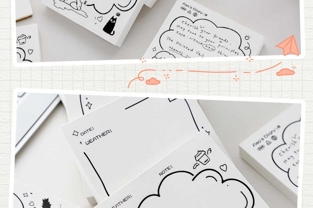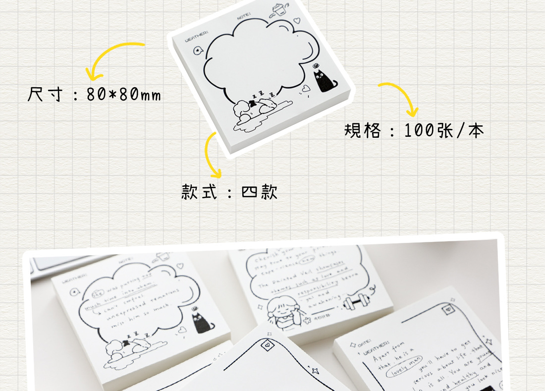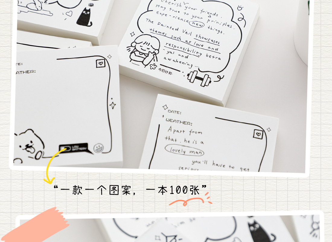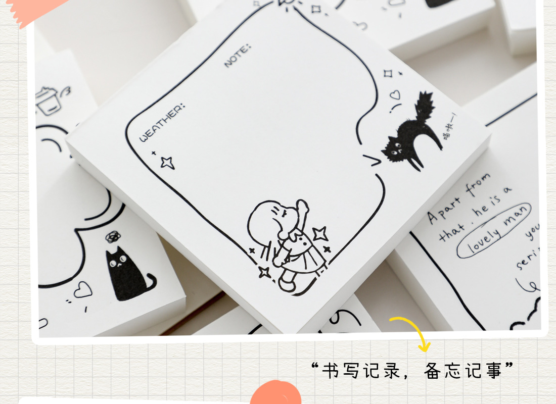 Amei 일기 귀여운 노트 종이 비 끈적 끈적한 노트 북 diy 노트 메시지 작은 사각형 벽돌 노트 종이 400스토어 가기