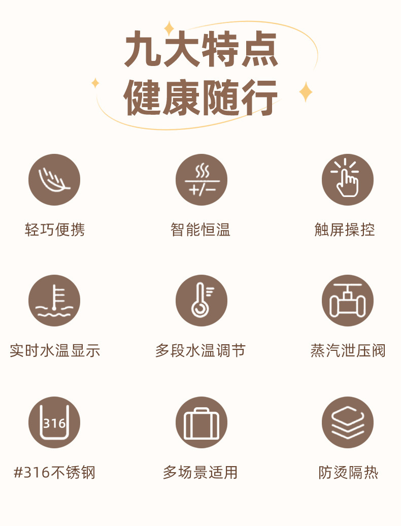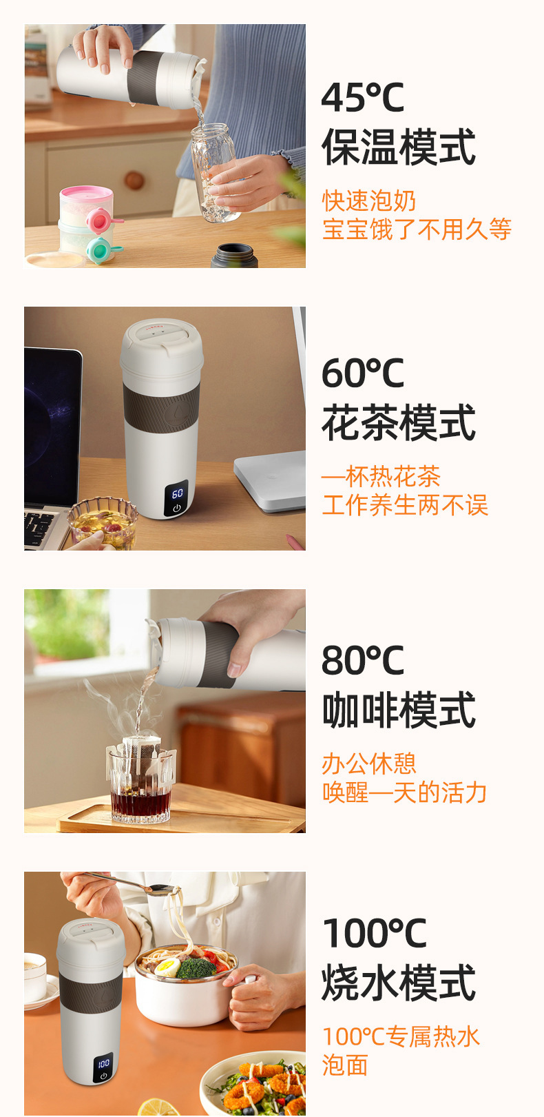 美规110V国标欧规英规220V便携式随身烧水杯多段调温电热杯加热杯