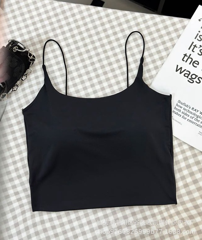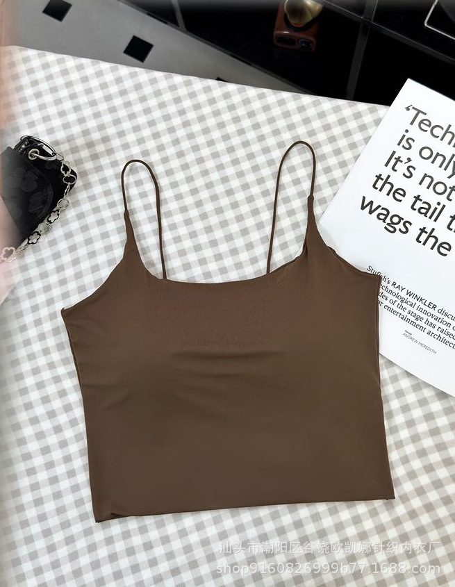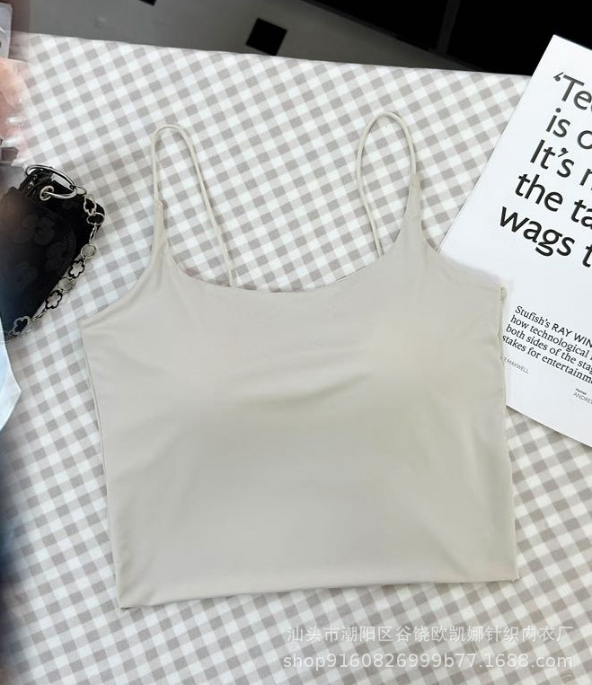 여름옷걸이, 단색, 심리스 아이스 실크 캐미솔, 고정컵, 고급형, 슬리밍, 등이없는, 누드 느낌, 아름다운 등스토어 가기