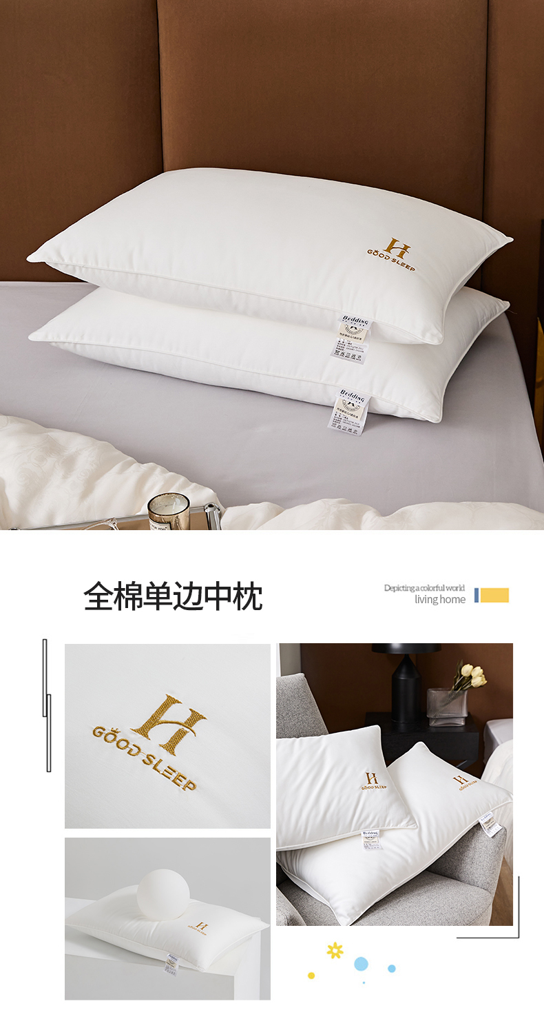 • 면 60S H 호텔 자수 일방적 중간 베개