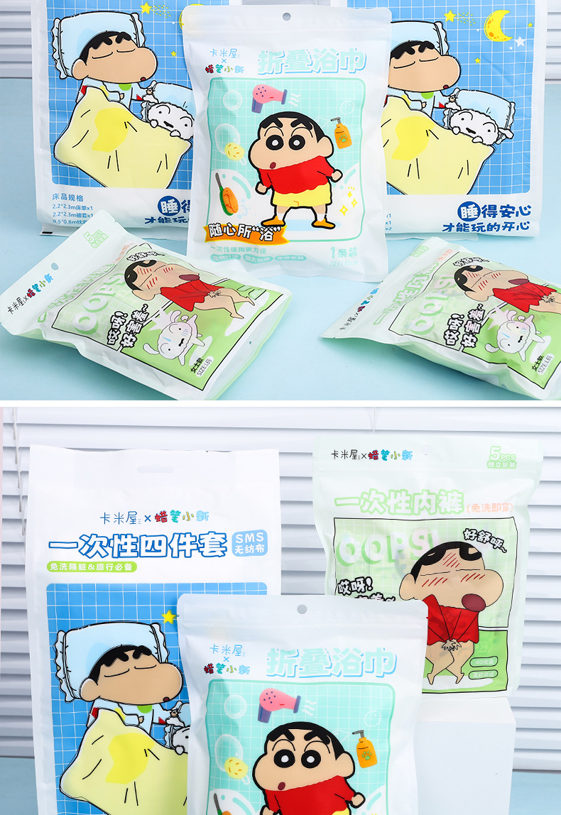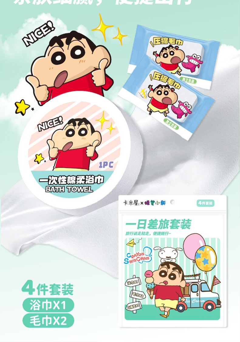 크레용 샤오신 정품 승인 일회용 여행 4 종 세트 학생 여성 야외 일회용 접이식 목욕 타월 속옷