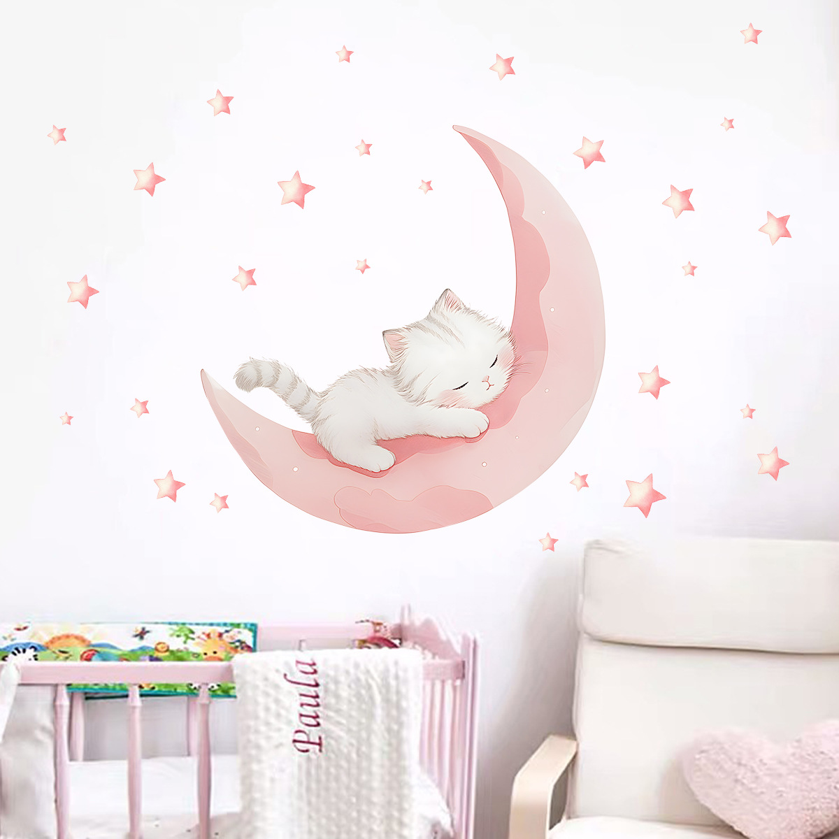 귀여운 문 고양이 자기 접착 벽 스티커 핑크 소녀 스타일 만화 어린이 방 장식 스티커 BR0529E