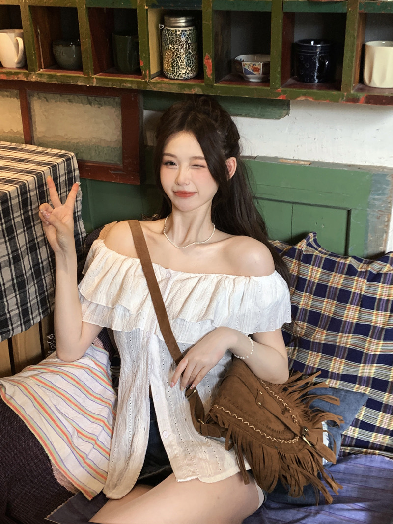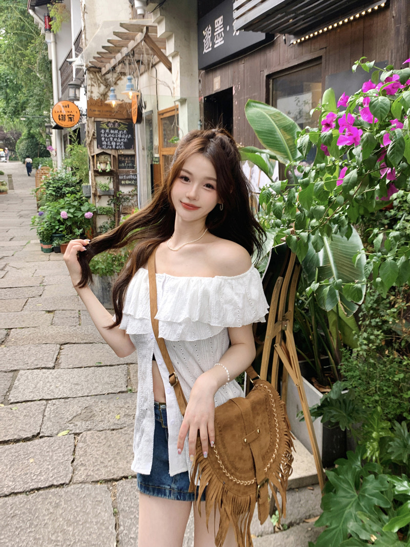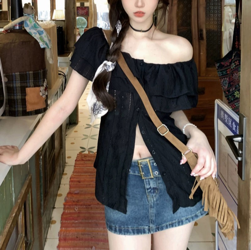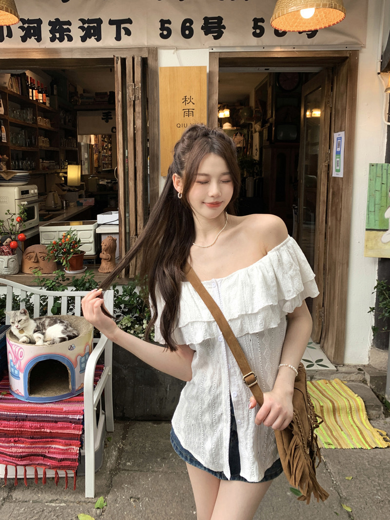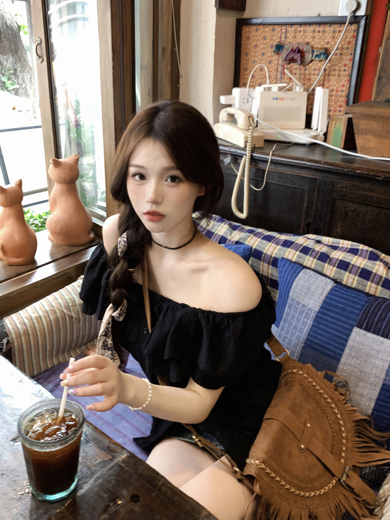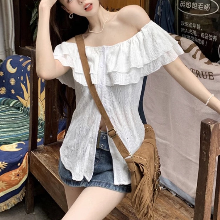 빅사이즈 원숄더 반팔 셔츠 여성용 2025 신상 여름 통통한 여성용 허리 슬림 효과 달콤하고 섹시한 스타일 오프숄더 셔츠 여성용