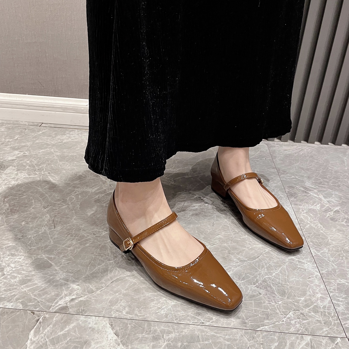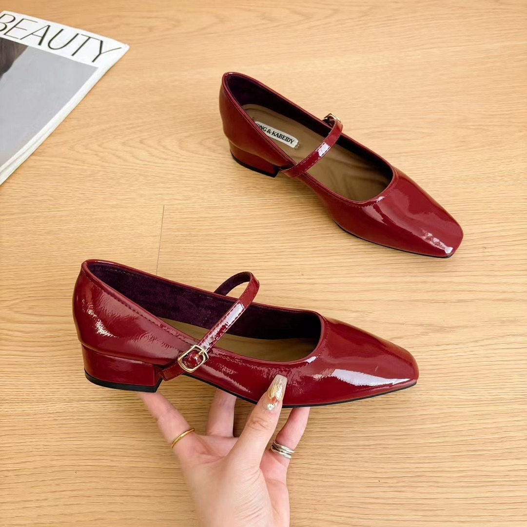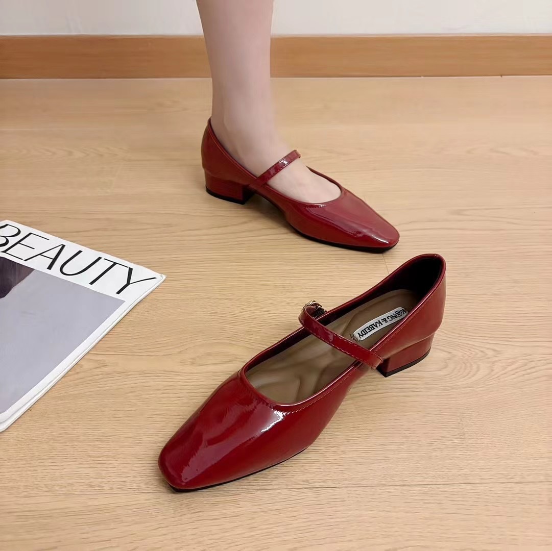 2026년 여름 핫템 메리제인 스퀘어토 가죽 슈즈, 통근용 로우힐, 스커트와 함께 착용하기 좋은, 이브닝 파티용 원스트랩 하이힐, 편안함스토어 가기