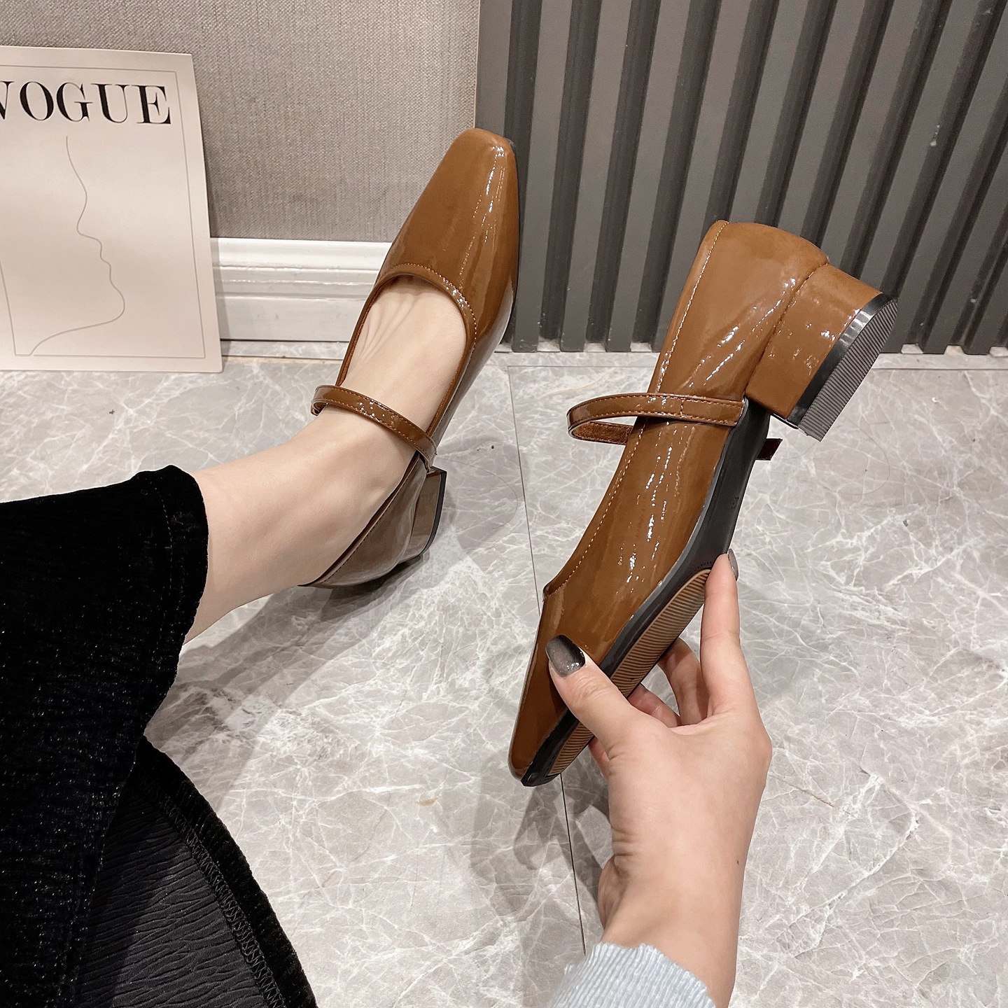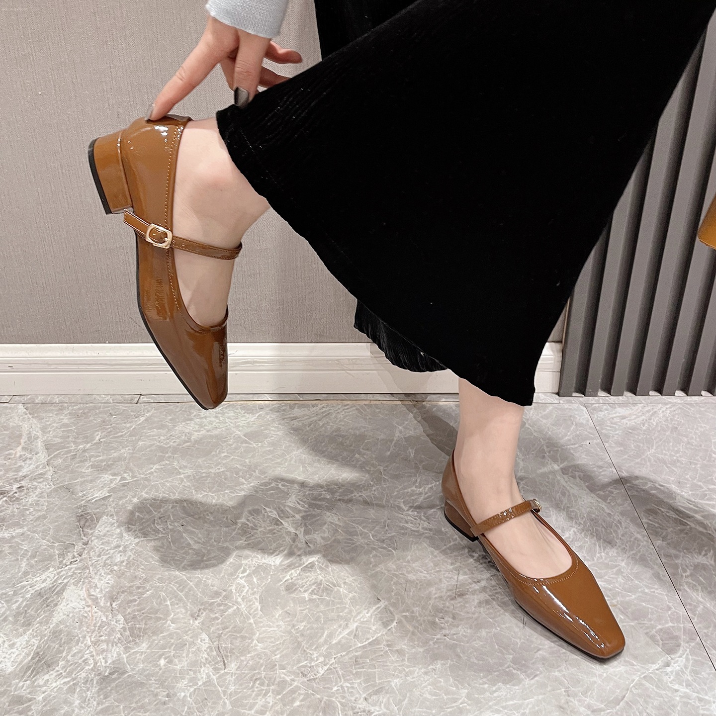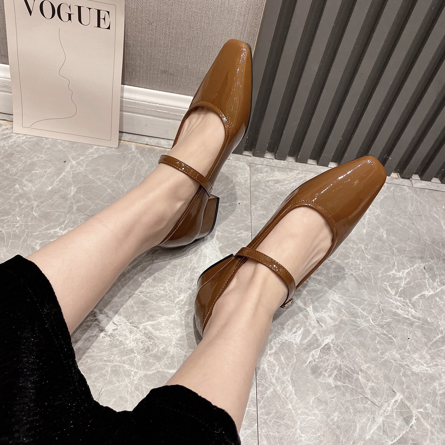 2026년 여름 핫템 메리제인 스퀘어토 가죽 슈즈, 통근용 로우힐, 스커트와 함께 착용하기 좋은, 이브닝 파티용 원스트랩 하이힐, 편안함스토어 가기