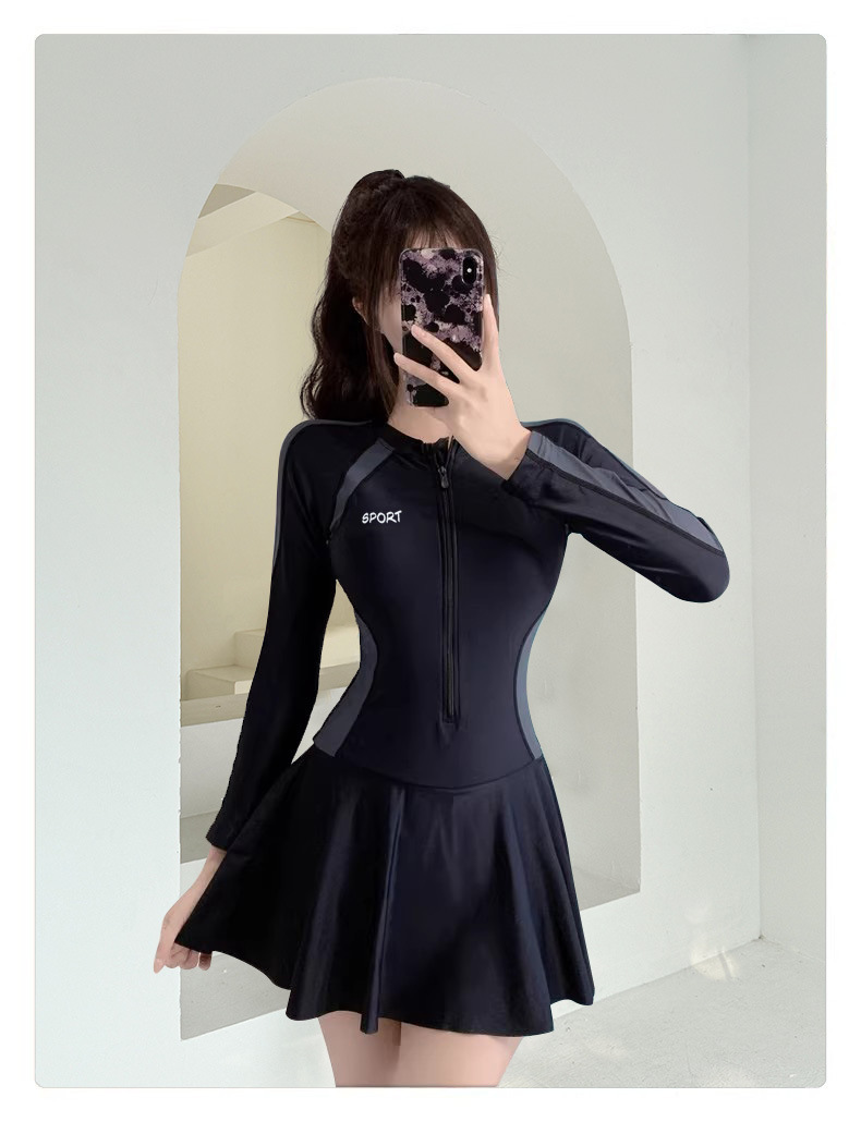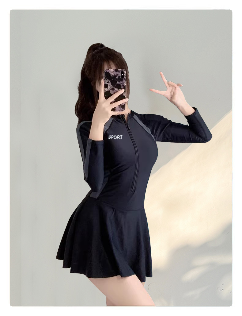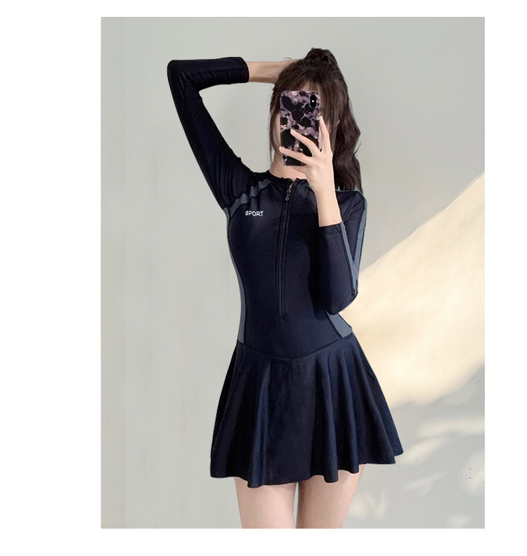 여성용 인기 수영복, 하이엔드 긴팔 자외선 차단 원피스, 배 커버, 슬리밍, 보수적인 스타일의 스포츠 수영복 도매스토어 가기