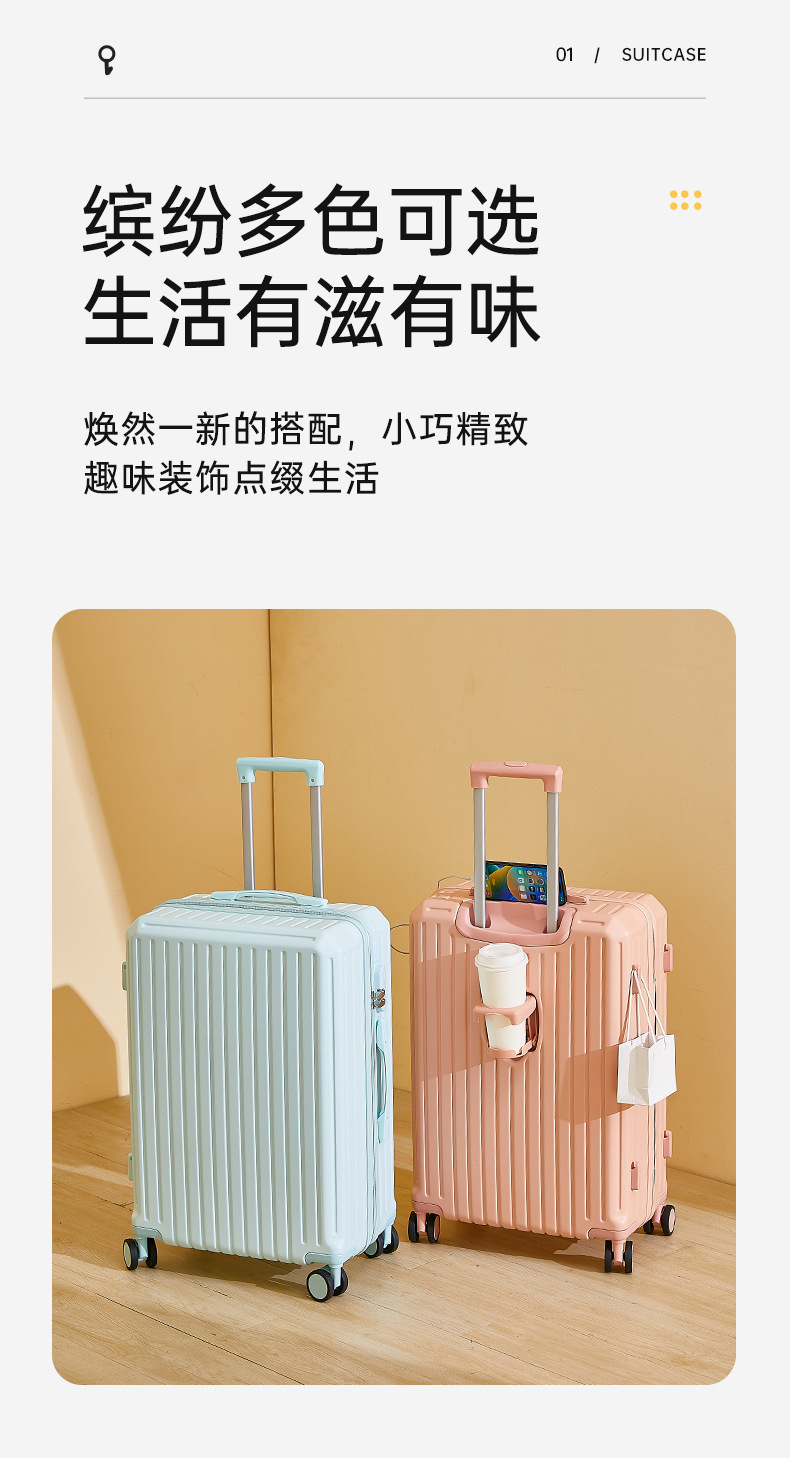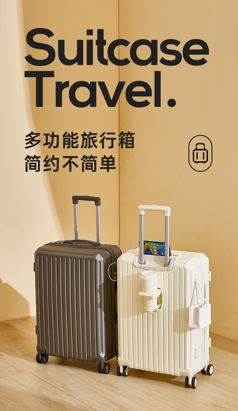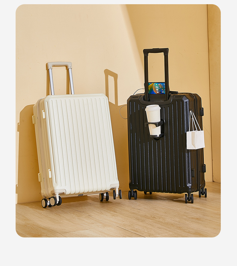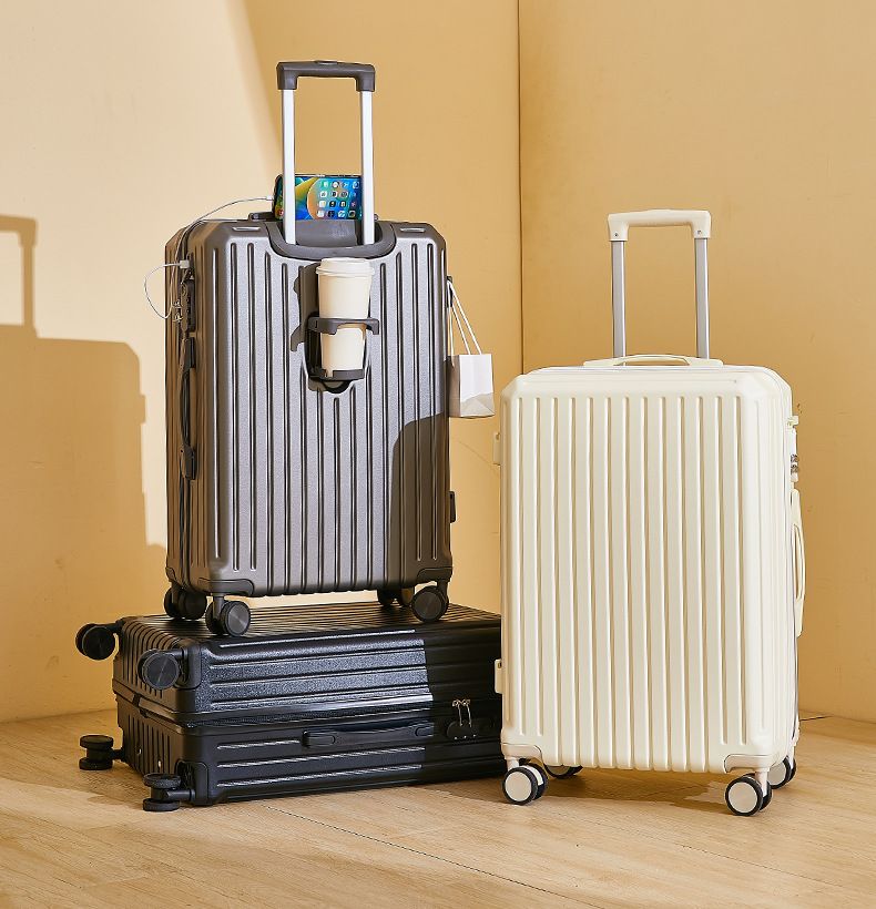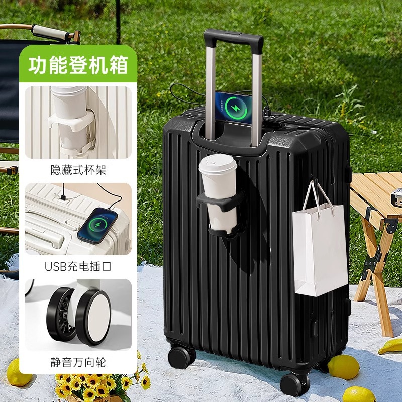 2024新款多功能高颜值行李箱USB充电接口旅行箱水杯架静音万向轮
