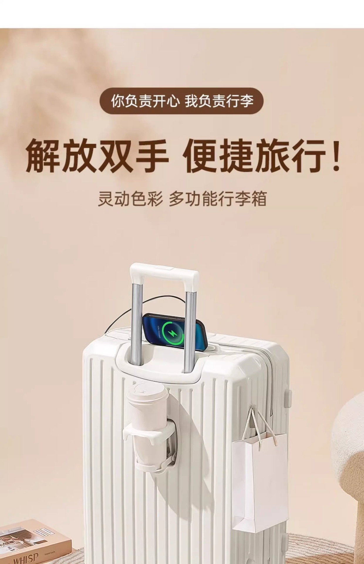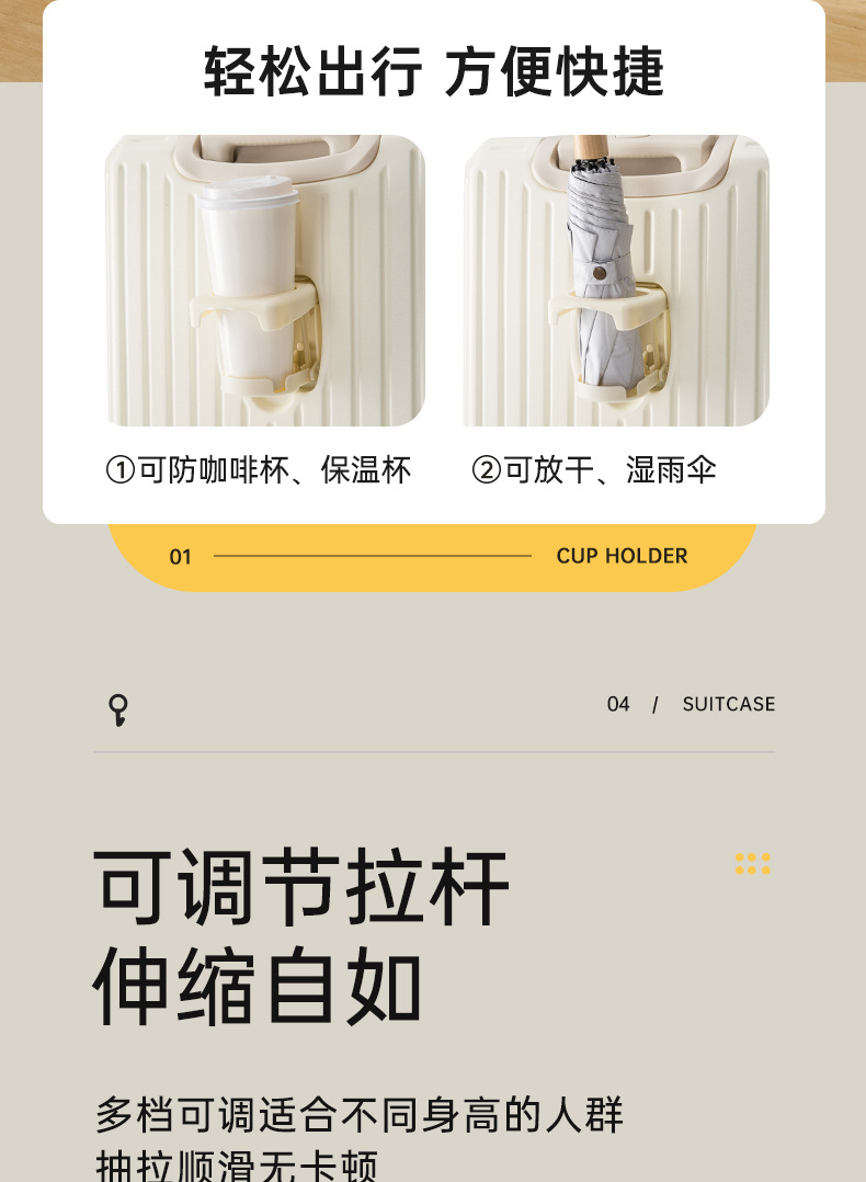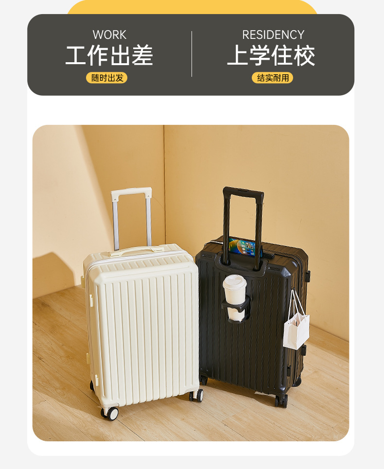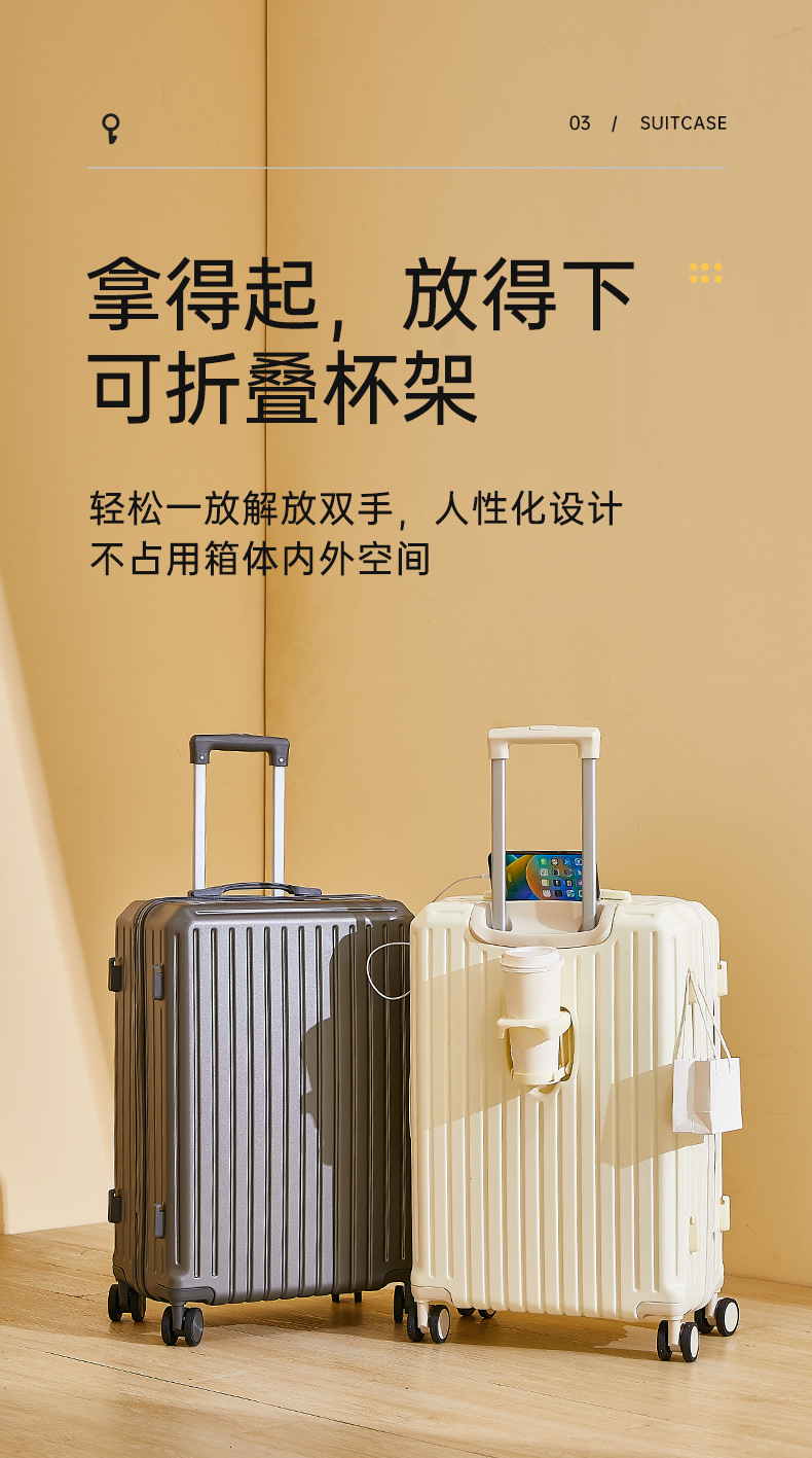 2024新款多功能高颜值行李箱USB充电接口旅行箱水杯架静音万向轮