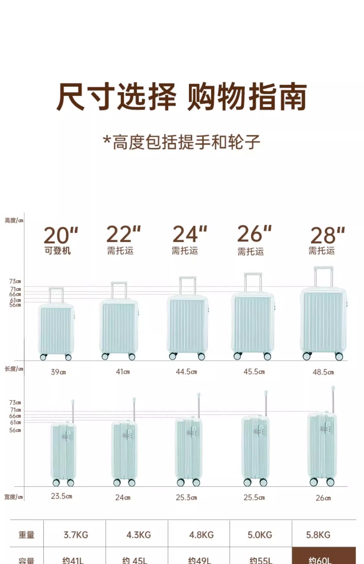 3、关于产品:行李箱因生产批次不同,会造成零配件不一致,这是正常现象,如有疑问请先联系客服再下单
