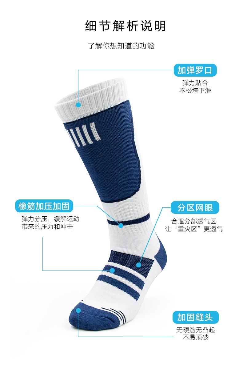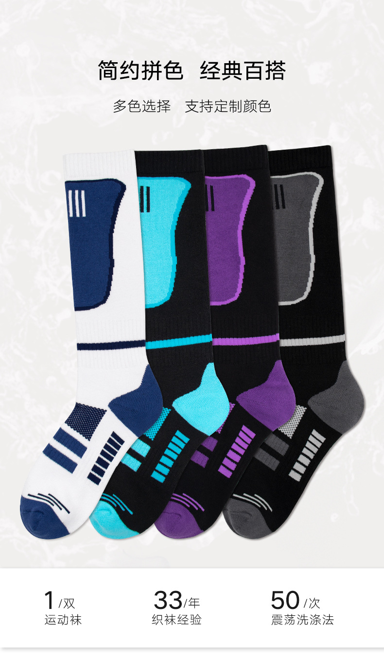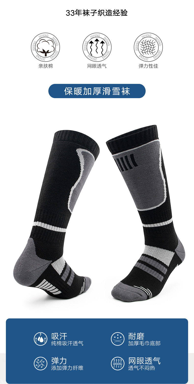 스키 양말, 긴 튜브, 따뜻하고 흡습성 야외 등산 양말, 두꺼운 수건 바닥, 충격 흡수 및 편안한 남성용 스포츠 스노우 양말