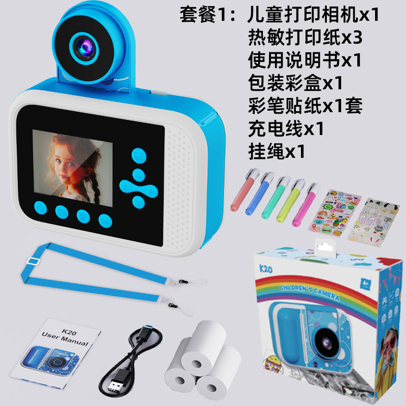 PORITAL CAMERA K20 휴대용 가역 사진 국경 어린이 만화 HD 디지털 인쇄 카메라