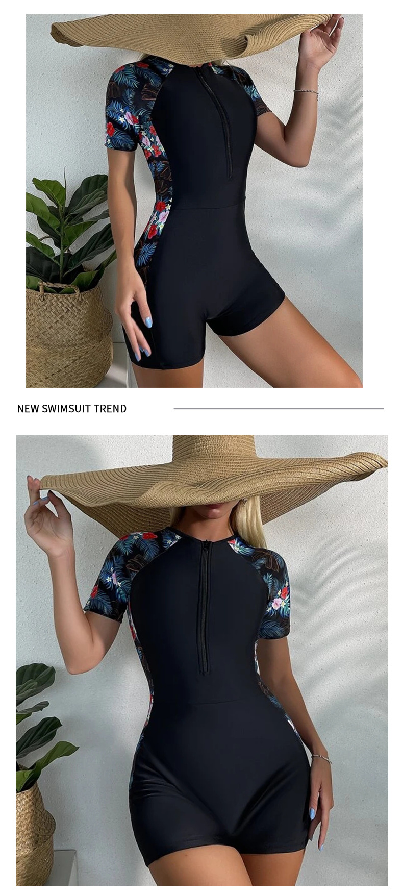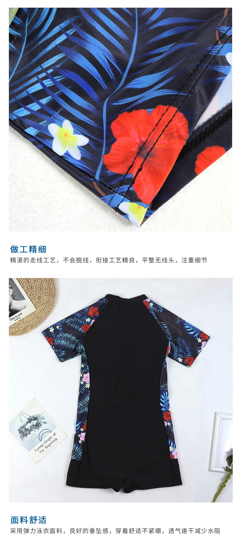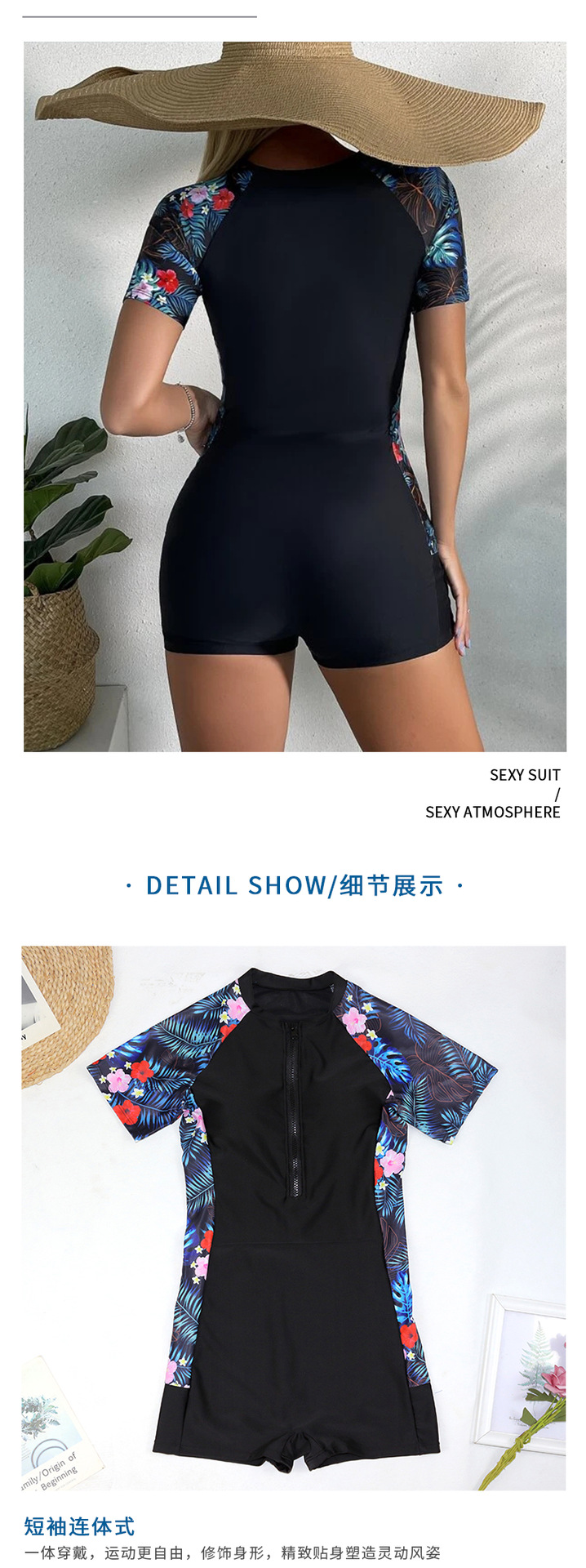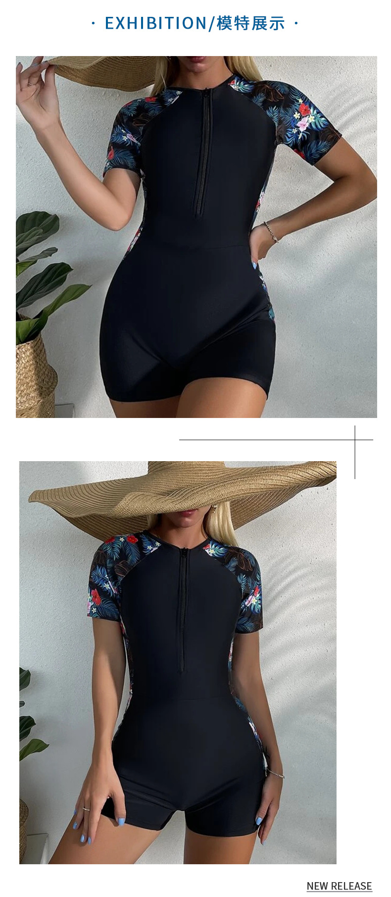 유럽과 미국의 대외 무역 새로운 반팔 여성 서핑 수트 보수 스타일 원피스 지퍼 대칭 인쇄 플랫 앵글 다이빙 수영복