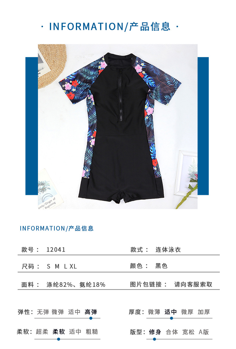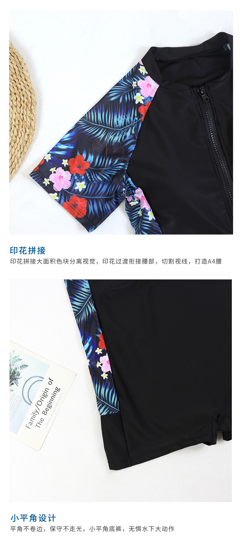 유럽과 미국의 대외 무역 새로운 반팔 여성 서핑 수트 보수 스타일 원피스 지퍼 대칭 인쇄 플랫 앵글 다이빙 수영복스토어 가기