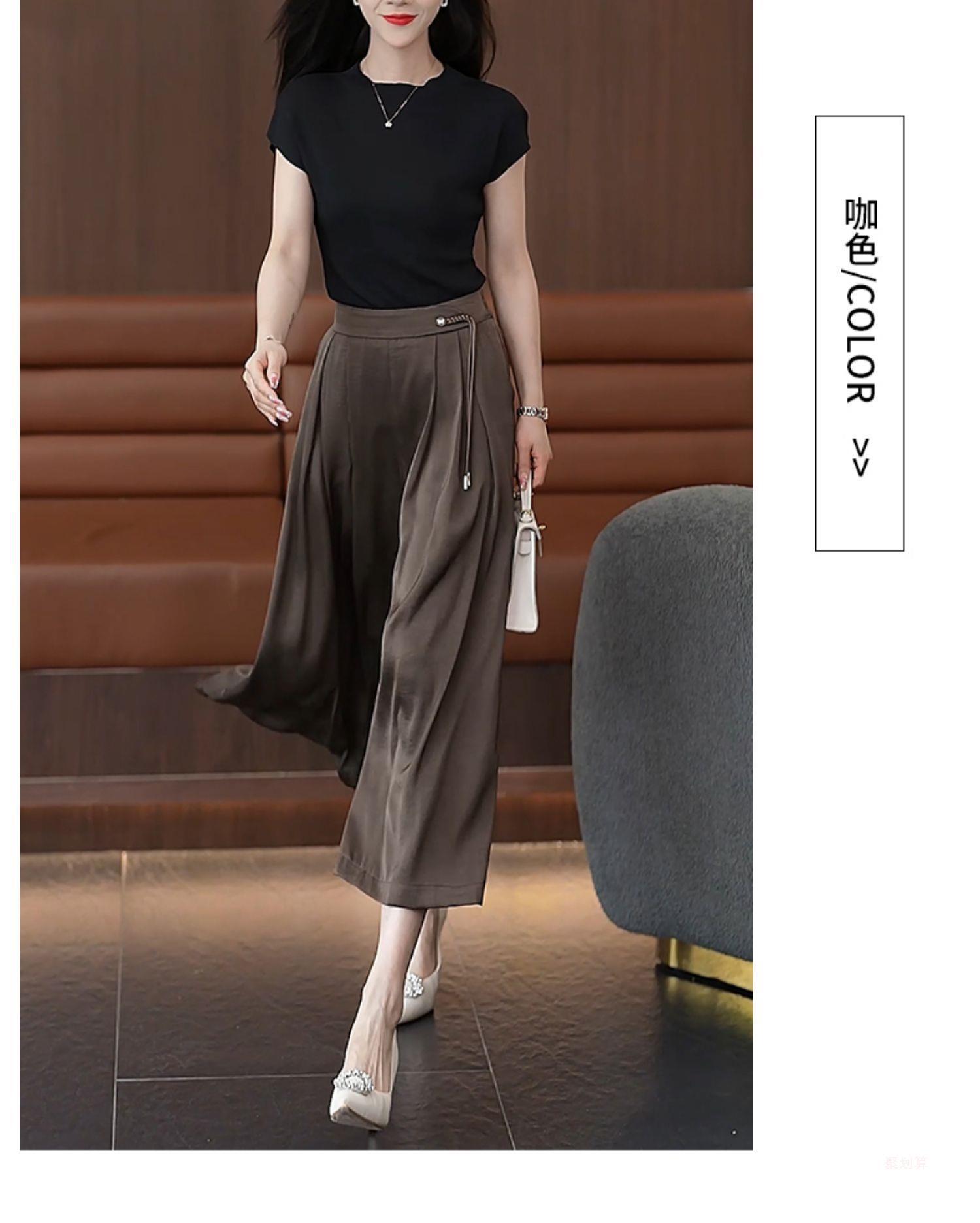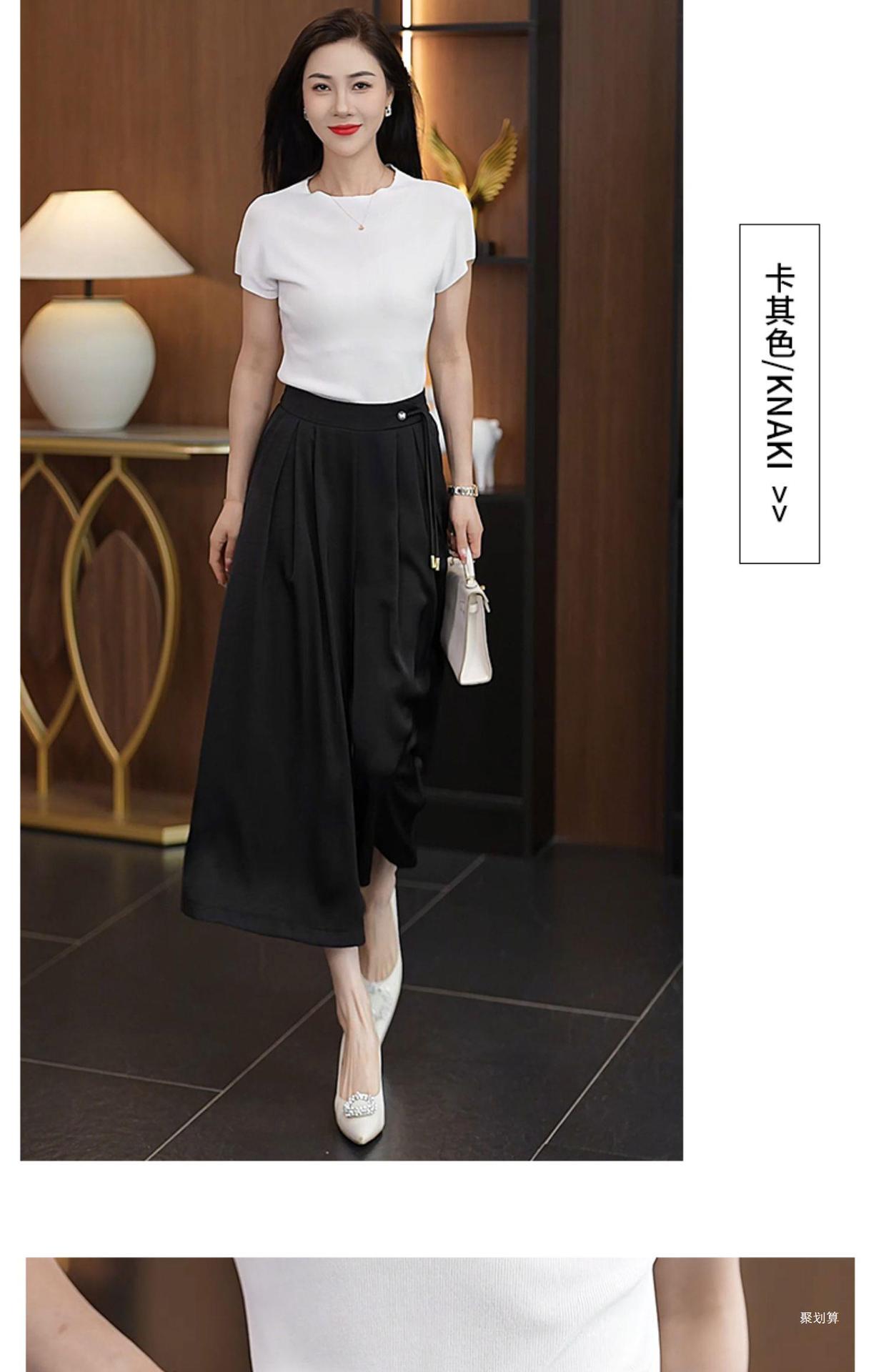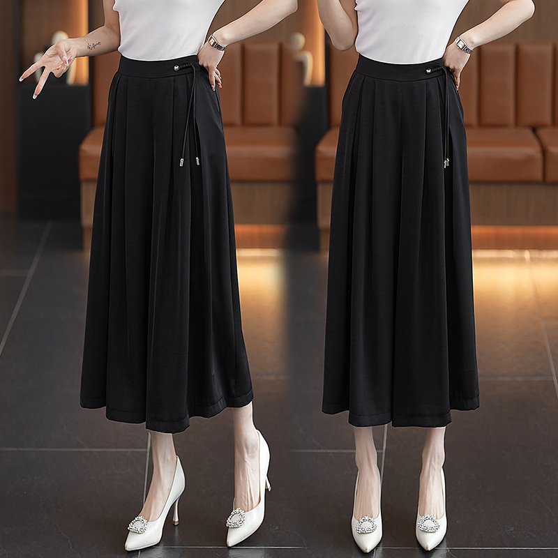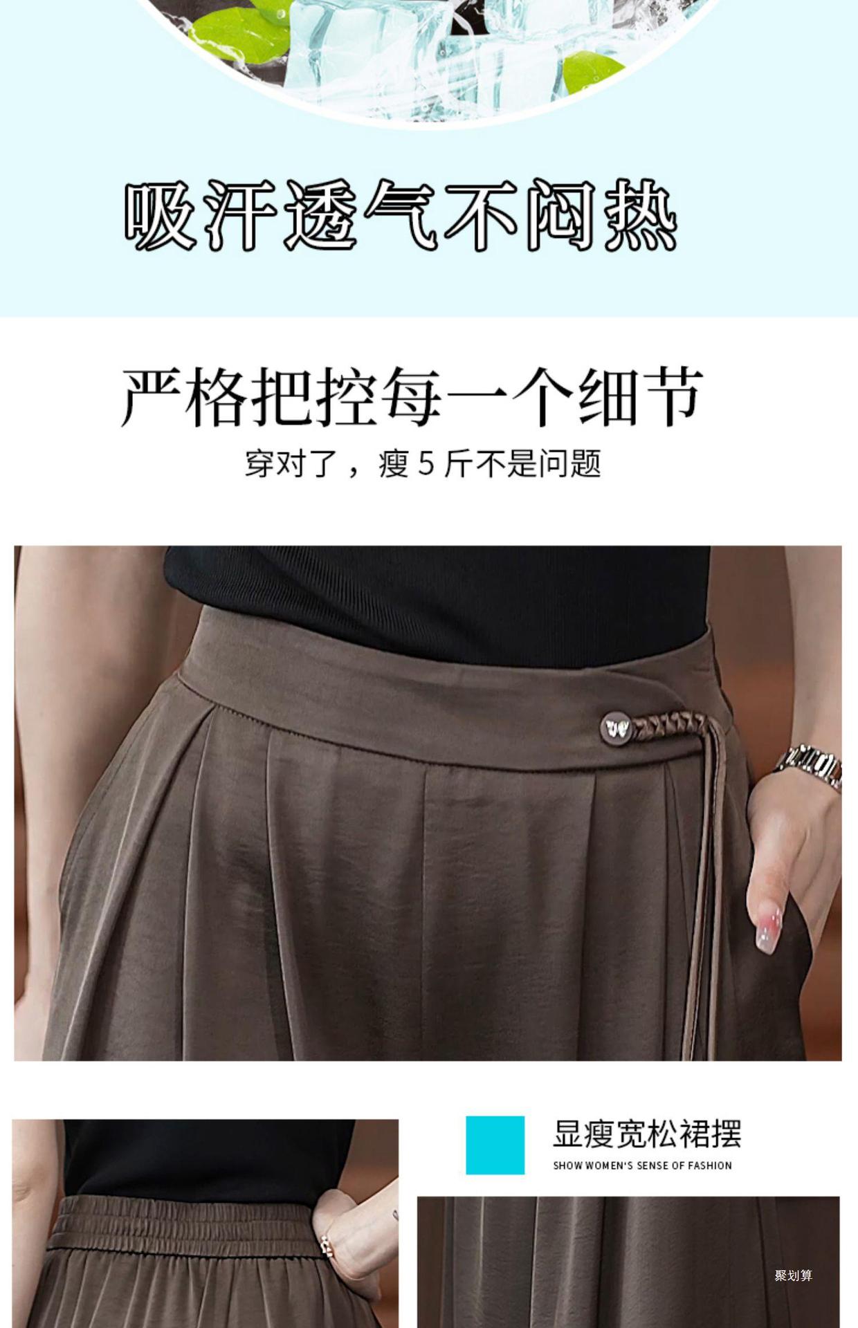 새로운 중국 스타일 치마 여성의 2024 새로운 여름 얇은 아이스 실크 국가 스타일 스커트 높은 허리 A 라인 주름 치마