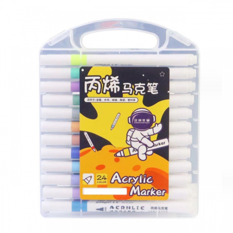 • 24 색 아크릴 마커 펜 (둥근 막대 PVC 상자)