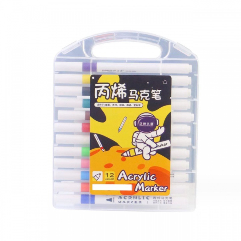• 12 색 아크릴 마커 펜 (둥근 막대 PVC 상자)