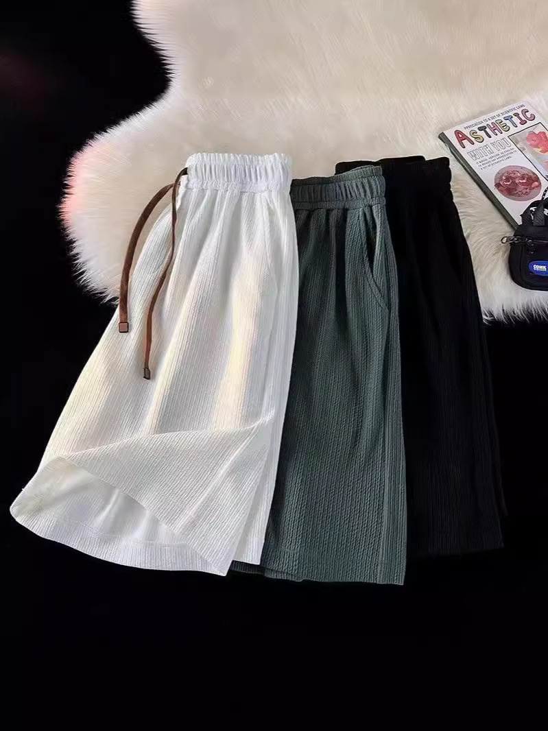 여름 얇은 아이스 실크 반바지 남성 트렌디 한 브랜드 Ins 느슨한 캐주얼 스포츠 5 점 바지 트렌디 한 올 매치 비치 바지스토어 가기