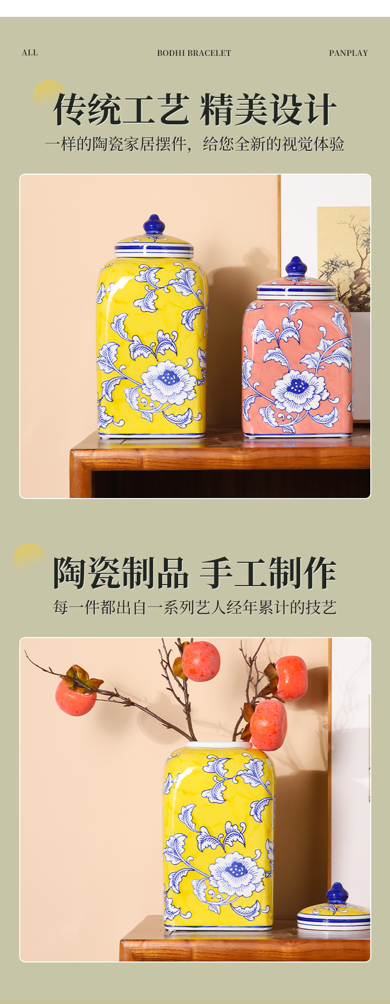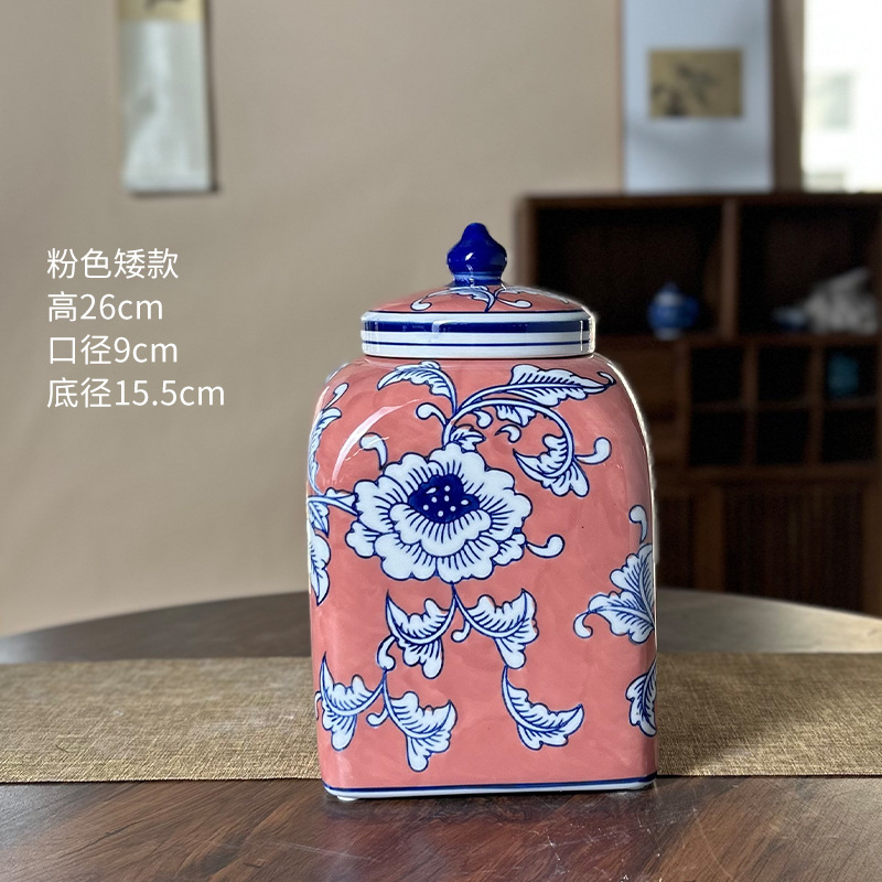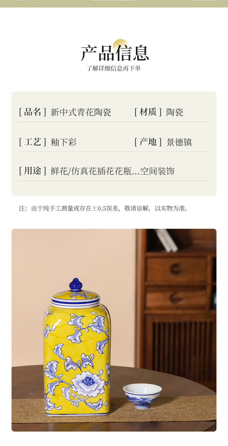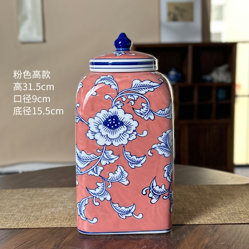 새로운 중국 제국 노란 광장 저장 항아리 빨간 세라믹 꽃병 입장 럭셔리 인공 꽃 꽃병 부드러운 장식