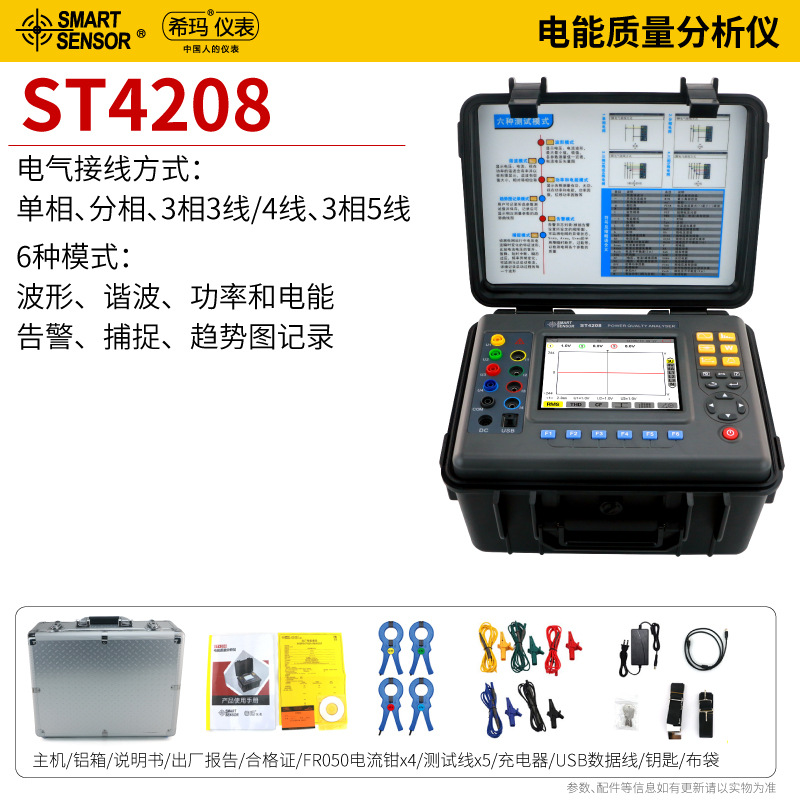 Sima ST4208 삼상 전력 품질 분석기 전력 조화 테스트 레코더 위상 전압계
