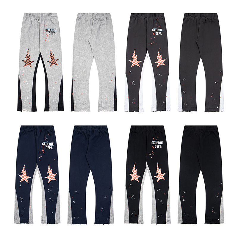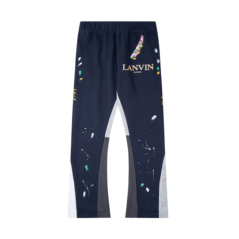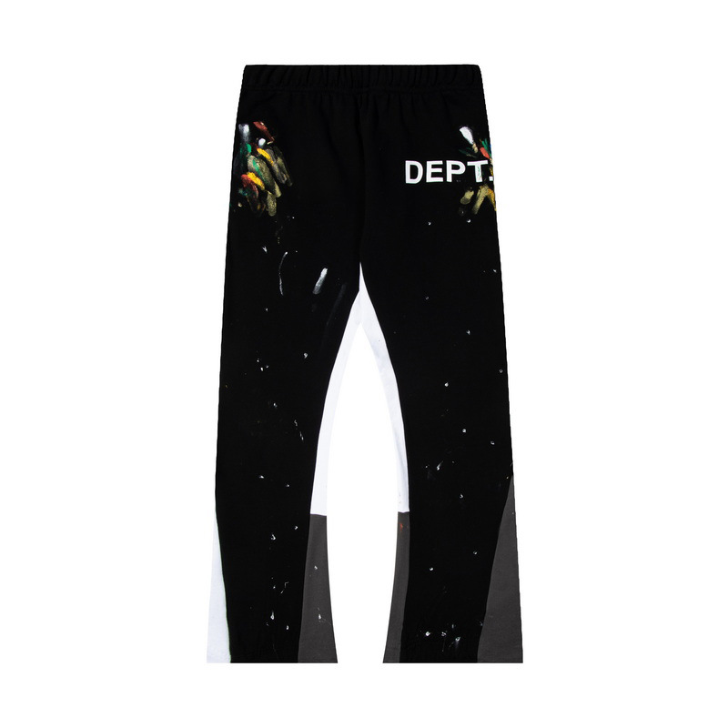 올바른 버전 갤러리 dept 손으로 그린 스플래시 잉크 스티칭 드로스트링 하이 스트리트 캐주얼 바지 마이크로 롱 바지 남성