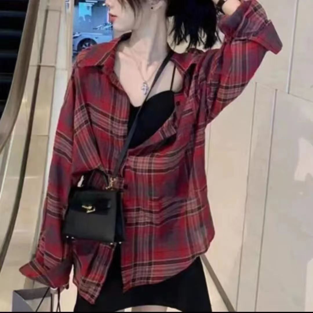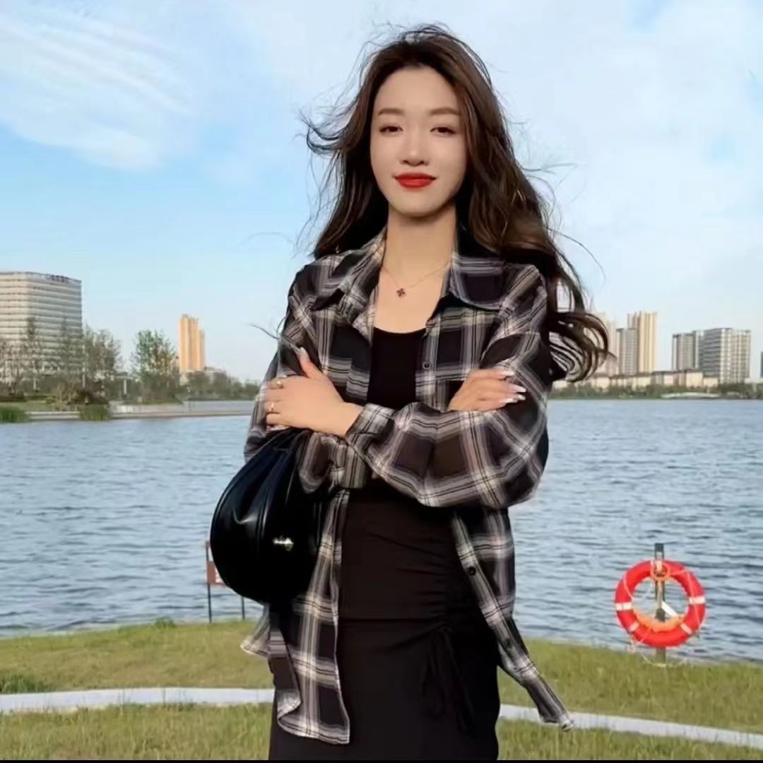 태양 보호 격자 무늬 셔츠 여성용 긴 소매 최고 여름 2024 새로운 우아한 캐주얼 느슨한 얇은 태양 보호 재킷스토어 가기
