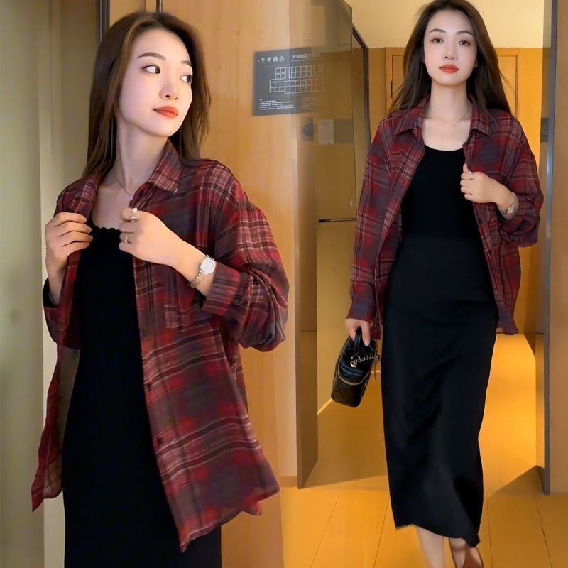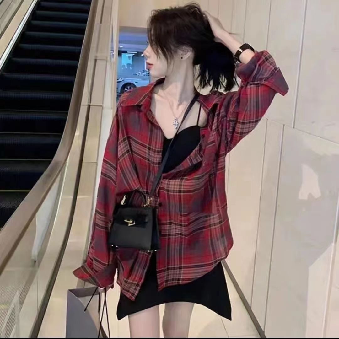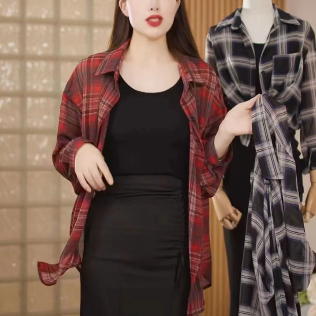 태양 보호 격자 무늬 셔츠 여성용 긴 소매 최고 여름 2024 새로운 우아한 캐주얼 느슨한 얇은 태양 보호 재킷