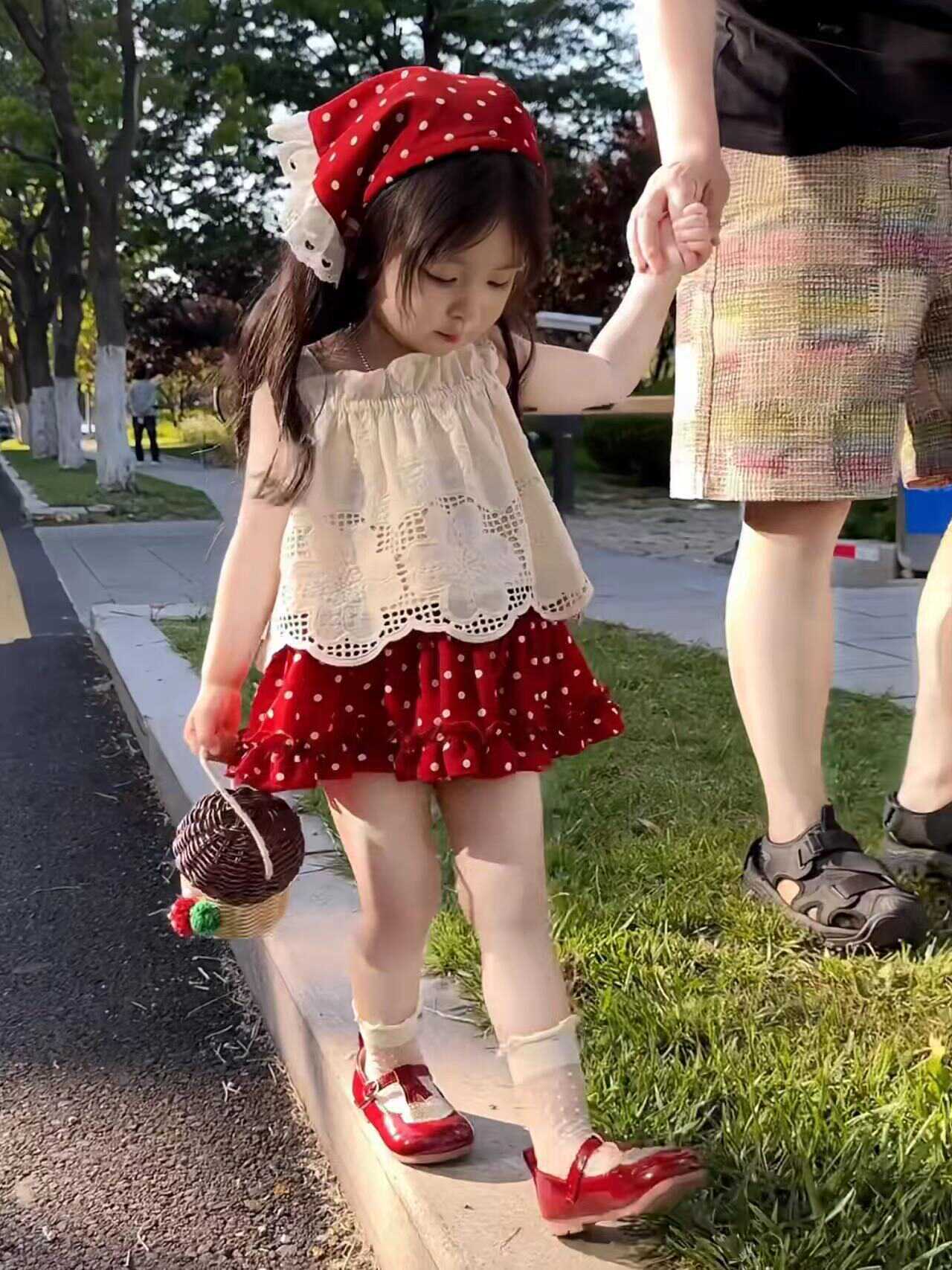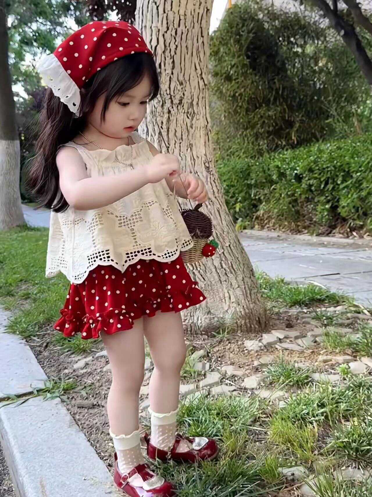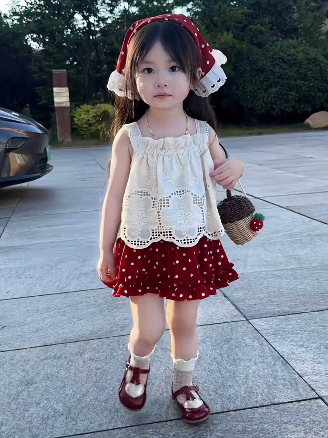 [헤어후프] 소녀 작은 빨간 승마 후드 모리 공주 스타일 슈퍼 요정 폭발 유치원 붉은 웨이브 닷 외국식 세트